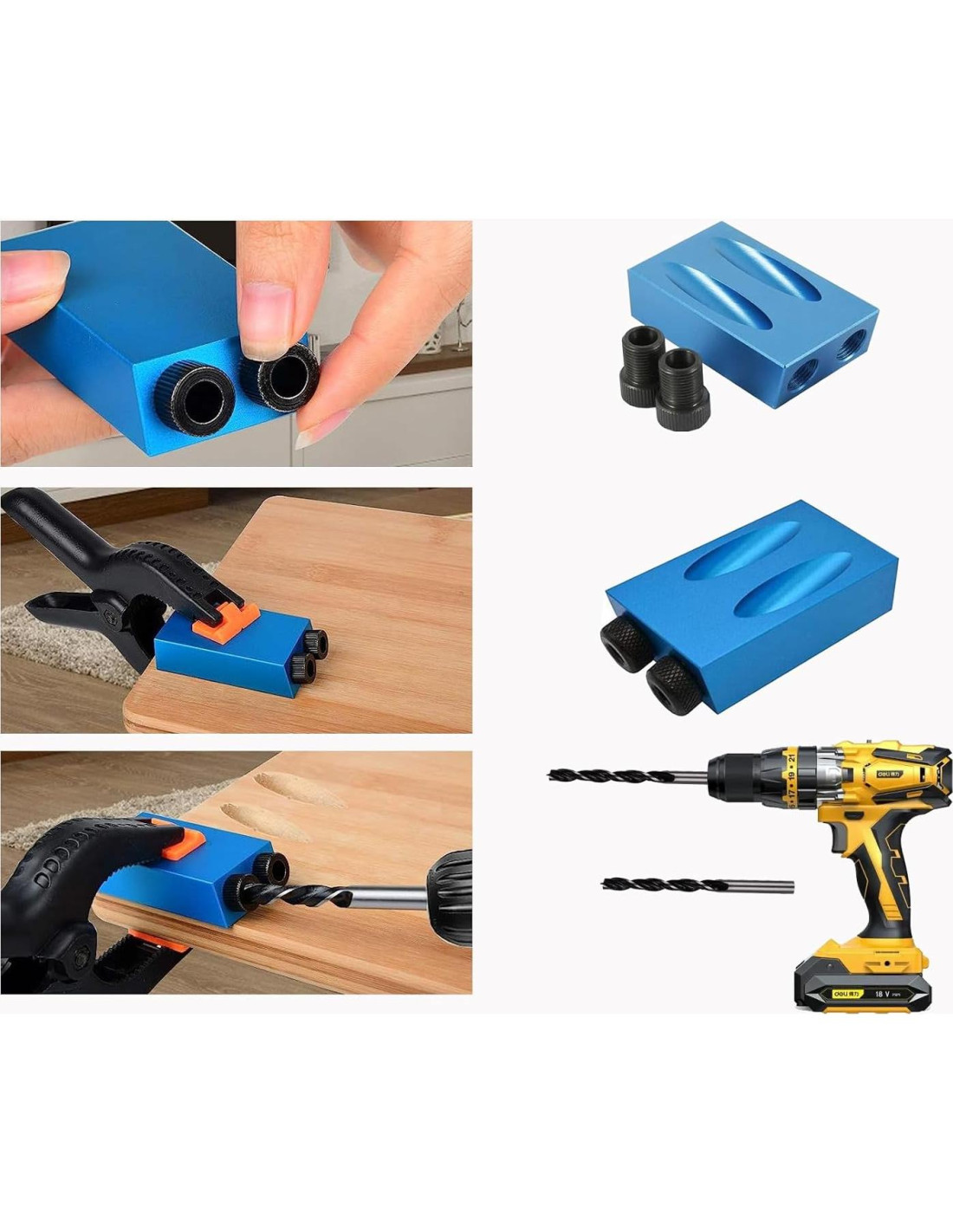- [Fácil de Usar] Perfora agujeros inclinados rápida y fácilmente para ocultar tornillos en muebles de madera. Tamaño mínimo: puede sostenerse con una mano, herramientas de carpintería de bricolaje y agujeros inclinados de 2 vías para una conexión de tornillo precisa.
