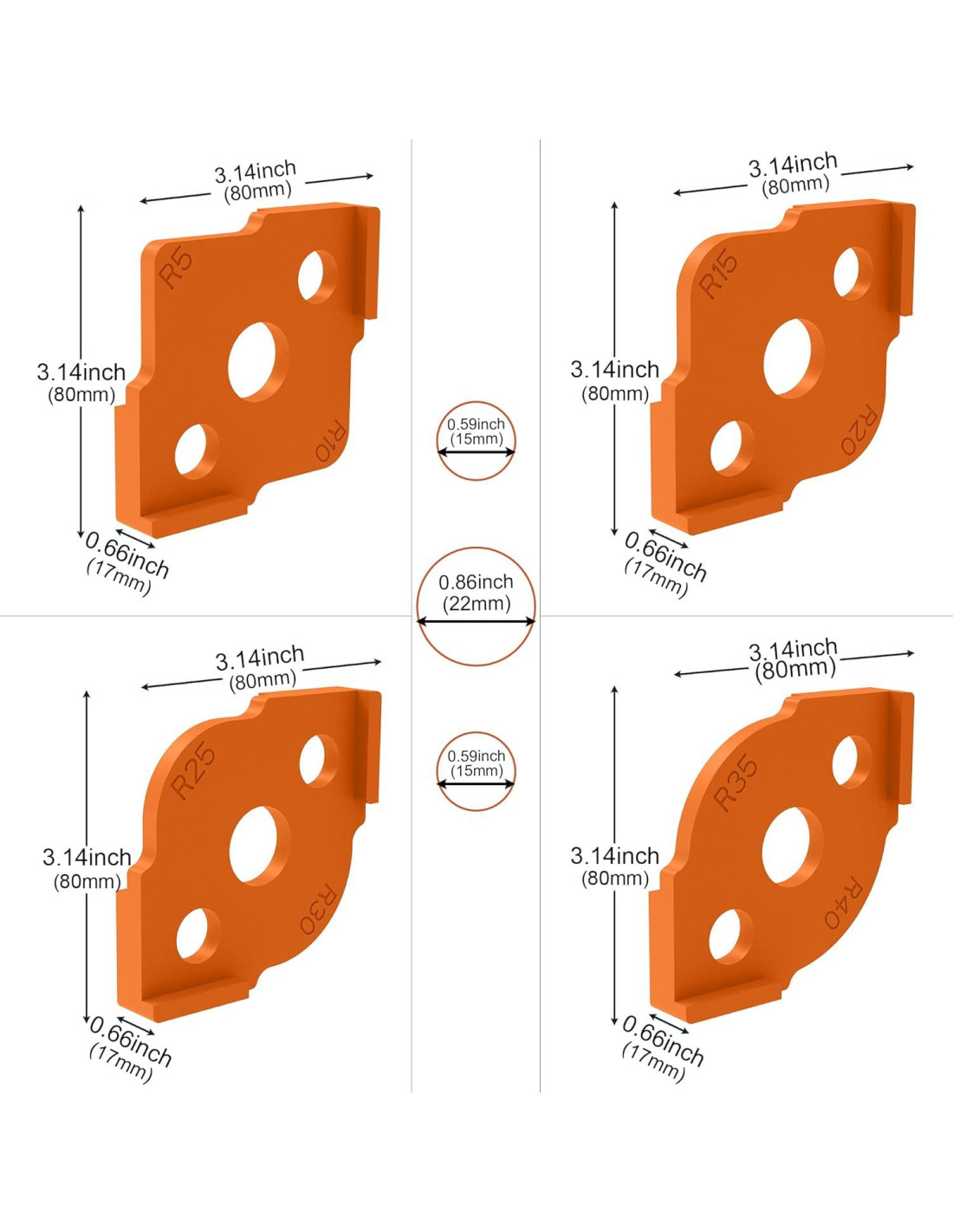 - [Herramientas de carpintería profesionales]: Está diseñado con tres agujeros para evitar cortes. Este conjunto de herramientas permite recortar los bordes y esquinas de la tabla. Lo llamamos Radius Quick-Jig (Plantilla de Esquina). ¡Usa estos para cortar el radio exterior! Herramientas de carpintería prácticas y profesionales pueden hacer que el trabajo sea fluido y eficiente.