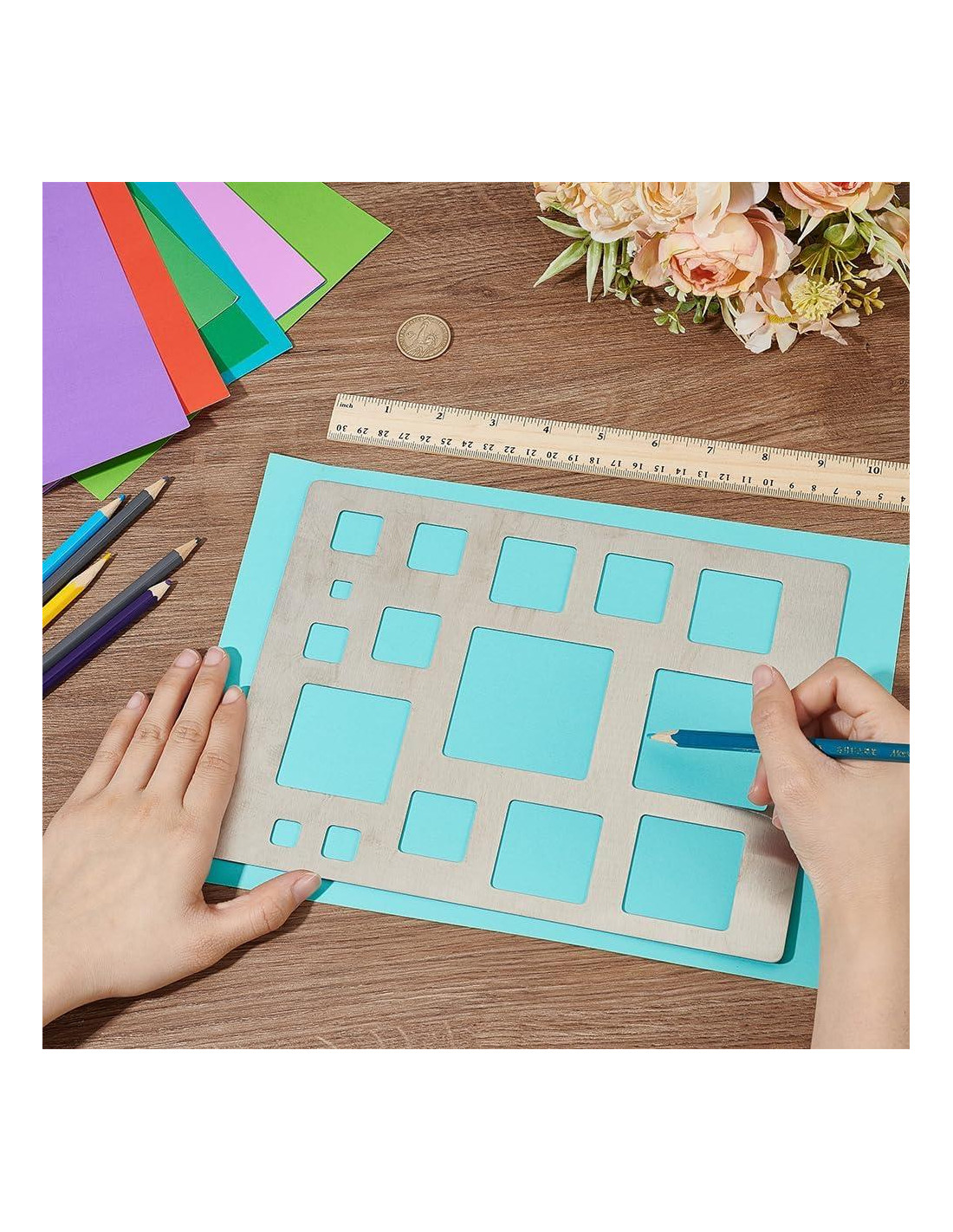 - Detalles del Tamaño: Esta plantilla cuadrada de metal mide aproximadamente 190x250 mm (7.5x10 pulgadas), aproximadamente 1 mm de grosor, lo que la convierte en la herramienta perfecta para dibujos y medidas precisas. El tamaño perfecto permite un manejo fácil, mientras que el diseño robusto asegura un rendimiento confiable para diversas necesidades artísticas y de manualidades.