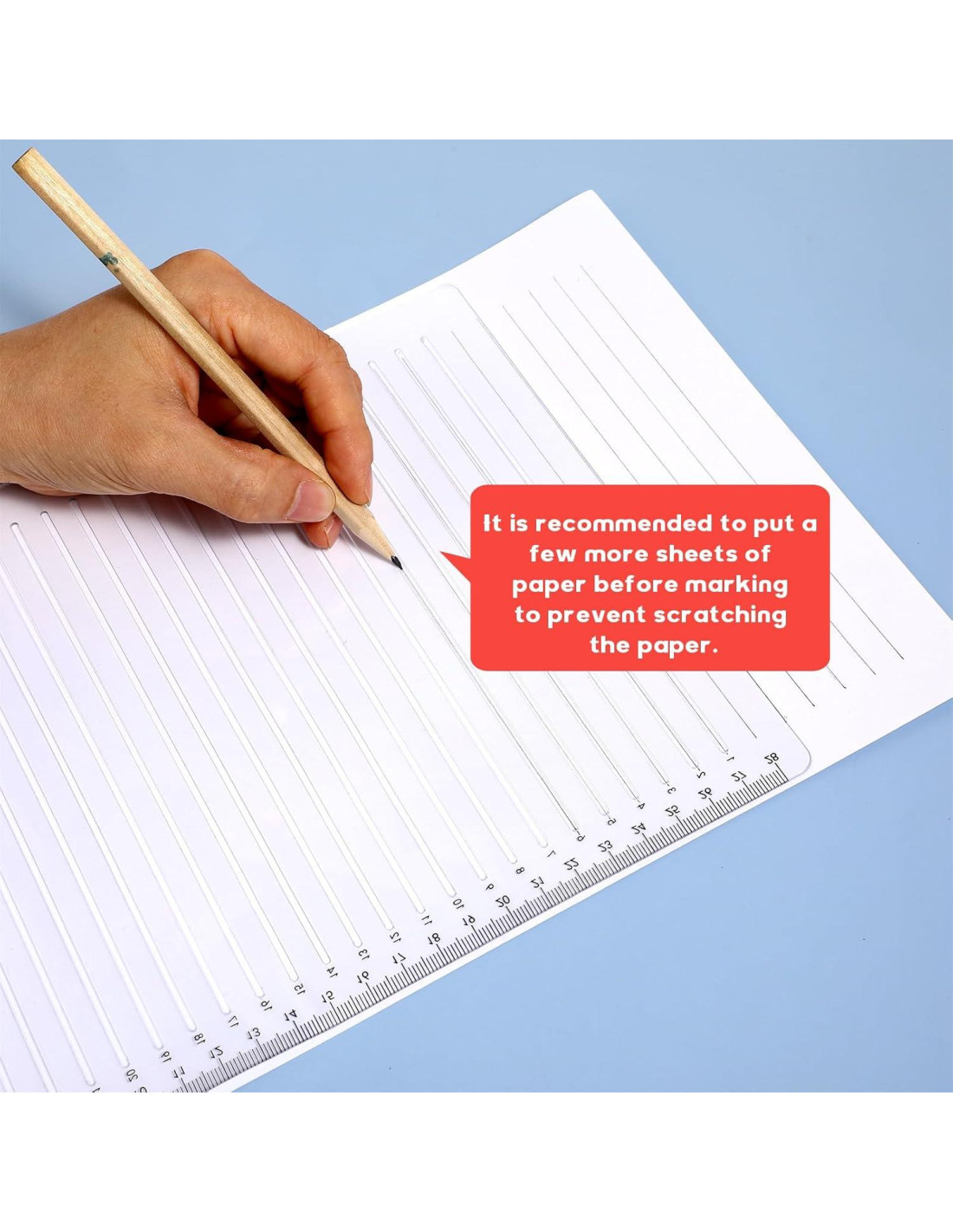 - Ayuda de escritura multifuncional: Plantilla de línea recta, perfecta para crear papel rayado, tarjetas de felicitación, álbumes de recortes y pautas de caligrafía. También la plantilla de línea funciona como una regla de medición (29.7 cm) e incluye patrones decorativos de diario en un extremo para proyectos creativos.