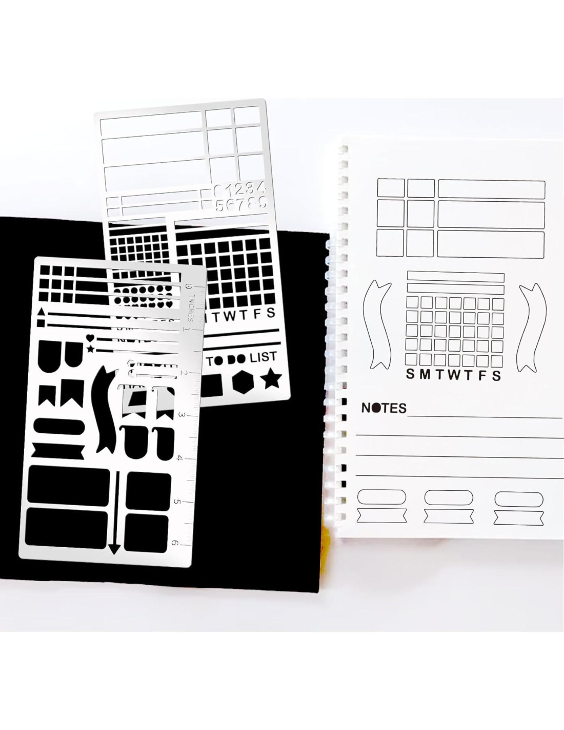 - Herramienta de Eficiencia: Las plantillas de regla para diario son ideales para planificadores y cuadernos A5. Y el diseño delgado de las plantillas de metal las hace fáciles de deslizar entre las páginas. Perfecto para estudiantes, entusiastas de la planificación y profesionales que ayudan a mejorar la eficiencia y alcanzar el objetivo