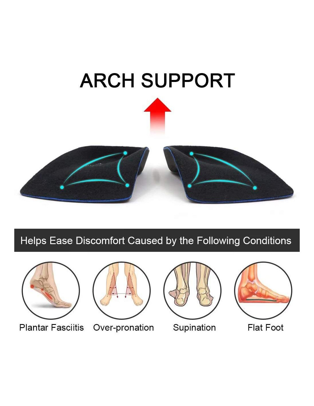 El soporte anatómico del arco distribuye el peso, reduce la presión y mejora la alineación y el equilibrio. Alivia el dolor en los pies, arcos y talones, la fascitis plantar y el dolor en la parte baja de la espalda. Se adapta a cualquier zapatilla, zapato o bota. Diseñado para hombres y mujeres activos de todas las edades. Los inserts ortopédicos Dr. Foot de 3/4 de longitud ayudan a reducir el estrés en los pies, tobillos y rodillas, y son ideales para tratar la fascitis plantar, el dolor en el talón y el dolor en los pies. Distribuye el peso y minimiza la presión para aliviar el dolor en los pies, arcos y talones, la fascitis plantar y el dolor en la parte baja de la espalda. Proporciona soporte anatómico del arco y comodidad para aquellos con pies planos, fascitis plantar, sobrepronación o dolor en los pies, arcos y talones. Ideal para aquellos que trabajan de pie o que están de pie o caminan durante períodos prolongados. Almohadilla de gel PU con diseño autoadhesivo para evitar el movimiento hacia adelante y la absorción de impactos. Material EVA de alta calidad para una forma de pie fija. Amortiguación de doble capa con material EVA de alta calidad, duradero y más suave para una máxima comodidad. Capa superior de tela de terciopelo para frescura y comodidad.
