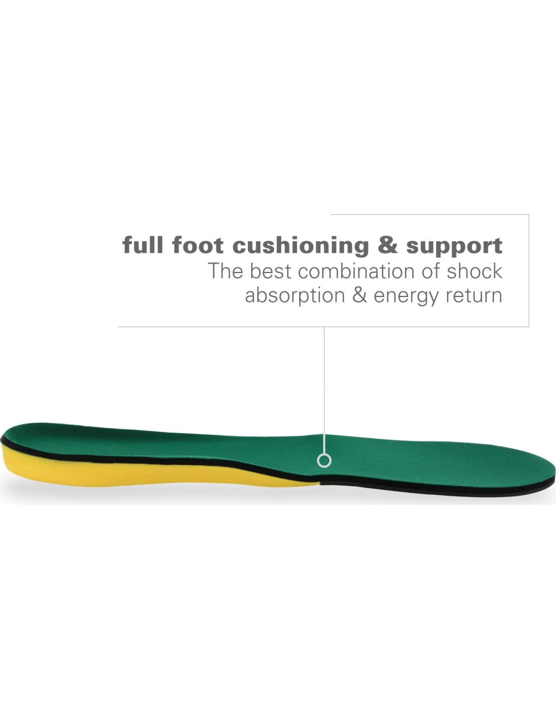 Descubre la combinación definitiva de absorción de impactos y retorno de energía con las plantillas atléticas Spenco Polysorb Cross Trainer. Perfectas para corredores y caminantes, estas plantillas premium para entrenadores cruzados ofrecen una amortiguación de nivel élite y absorción de impactos en el talón para actividades físicas sin dolor. Los insertos de zapato de espuma de poliuretano Polysorb livianos ofrecen un soporte de arco y estabilidad inigualables, muy superiores a los insertos de zapato de jaula de plástico, mientras que el material patentado SpenCore absorbe golpes e impactos para mantener tus articulaciones y músculos de la parte inferior del cuerpo cómodos y listos para la acción. La copa profunda del talón y la almohadilla del talón proporcionan protección adicional contra impactos, lo que las hace ideales para actividades deportivas y uso prolongado. La tela de estiramiento en 4 direcciones se adapta a los contornos del pie, previniendo ampollas y molestias, mientras que la tela superior de baja fricción asegura que tus pies se mantengan frescos y sin olores. Además, el corte para el dedo gordo preserva la función natural de tu pie para asegurar despegues eficientes y poderosos con cada paso. Las plantillas atléticas Spenco Polysorb Cross Trainer están diseñadas para ajustarse a toda la forma de tu zapato, asegurando comodidad y soporte de extremo a extremo. Úsalas para tus entrenamientos en casa, caminatas, carreras o cualquier actividad física y despídete de los pies adoloridos, cansados, ampollas y llagas por presión.