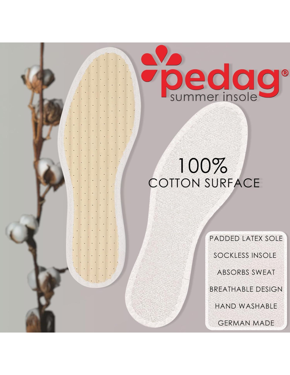 • PIES FRESCOS Y SECOS - Las plantillas Pedag Verano proporcionan transpirabilidad, absorben el sudor y combaten los olores. Perfectas para mocasines, zapatos de barco o slip-ons, protegen de la decoloración y el daño debido al sudor.