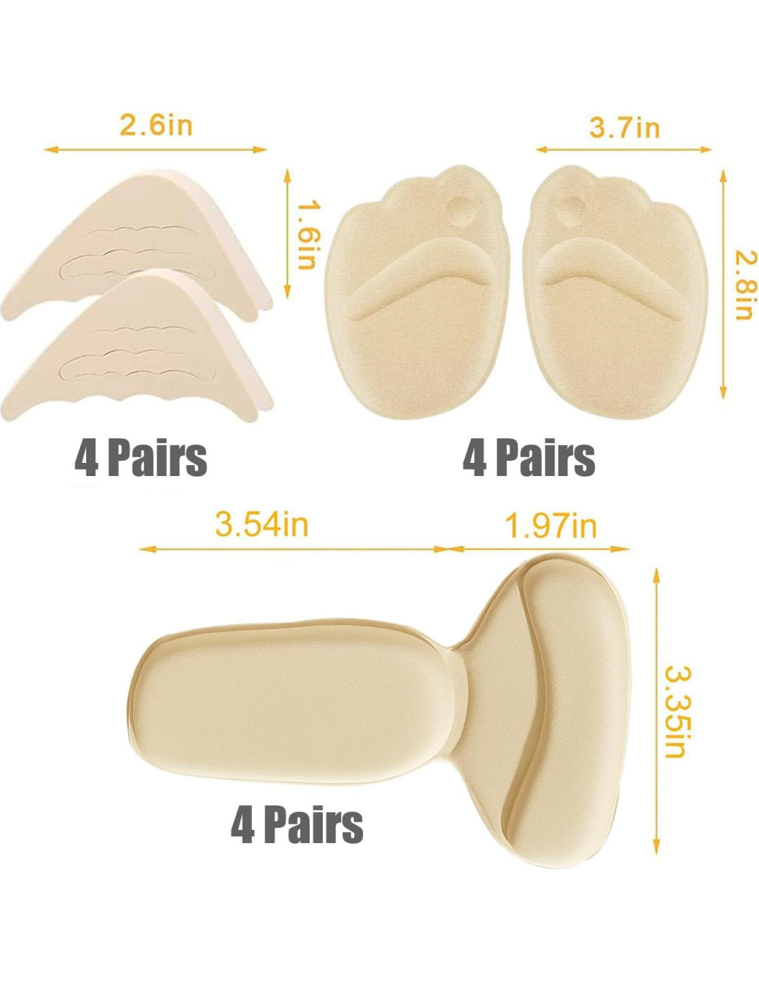 - Incluye: el paquete viene con 4 pares de relleno de espuma para dedos que se aplica para llenar la punta de los zapatos de tacón alto, 4 pares de forros para talones y 4 pares de plantillas traseras, 2 piezas de cada color, incluyendo negro y beige, bonita combinación para satisfacer tus diferentes necesidades.