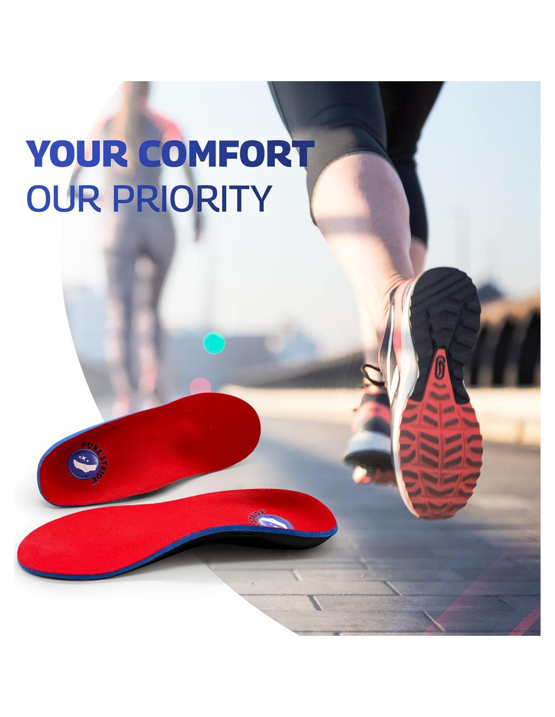 - Cuatro Capas de Comodidad: Las Plantillas Ortopédicas Pure Stride de Longitud Completa aseguran cuatro capas de máxima comodidad. Está compuesta de malla transpirable sin olor, una suave capa de EVA para amortiguar el pie, una carcasa de polipropileno y una EVA de alta dureza.