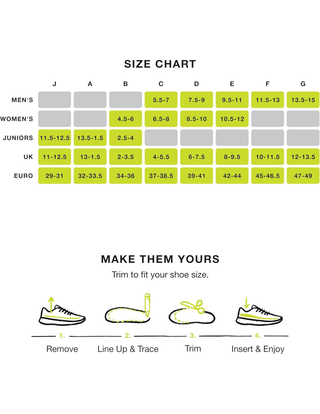 - Recortar para Ajustar: Las plantillas Superfeet están hechas para ser recortadas para ajustarse a tus zapatos y botas; sigue las instrucciones de corte antes de usar, y si estás entre tamaños, elige un tamaño más grande y recorta para ajustar