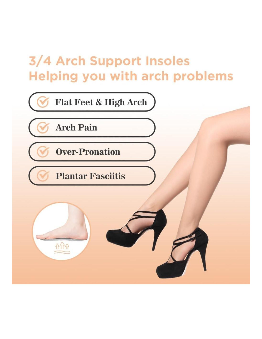 Plantillas de cojín de tacón alto 3/4 Unribeau, inserciones de soporte de arco autoadhesivas para pies planos y alivio del dolor en el arco, inserciones de gel para sandalias, planos y tacones altos