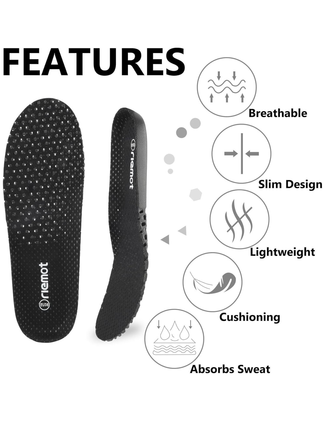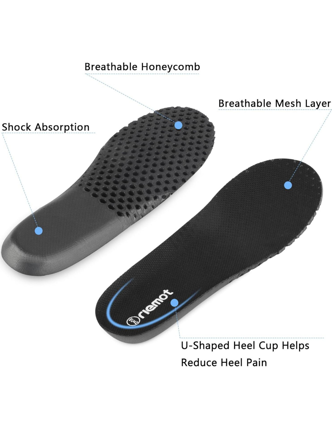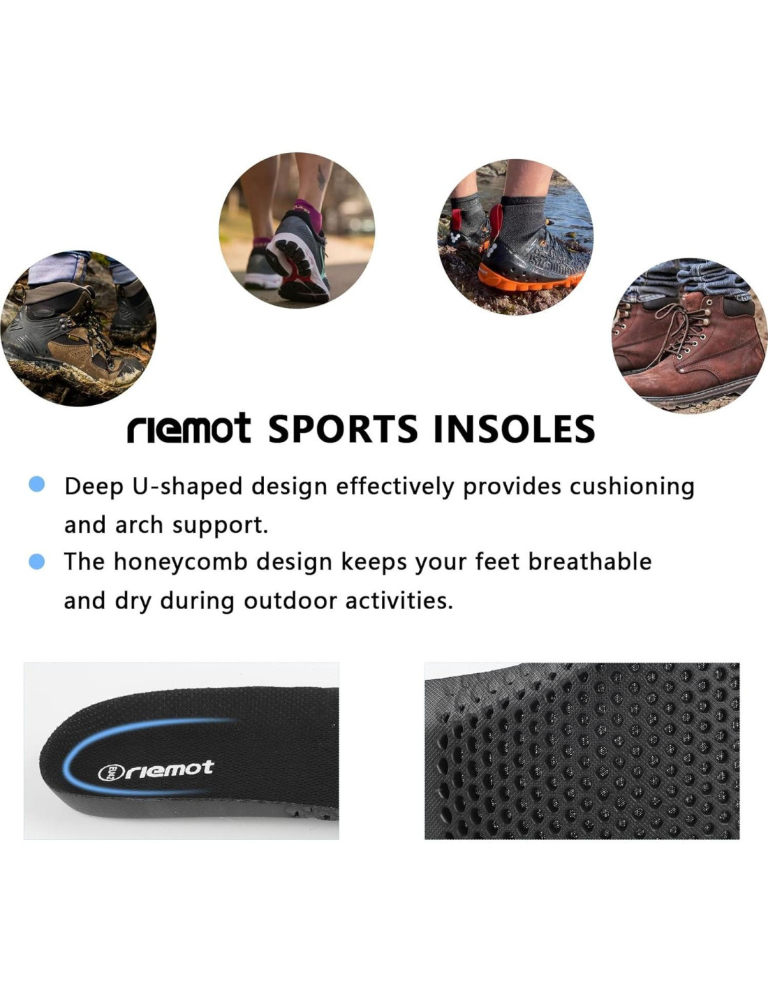 Establecida en 2017, riemot comenzó a diseñar y fabricar calzado deportivo y al aire libre, accesorios para zapatos y esenciales de viaje utilizando los materiales naturales de la más alta calidad. Ofrecemos a los consumidores conscientes del valor acceso a productos innovadores construidos desde la ciudad hasta el sendero... Las plantillas deportivas transpirables de panal y los zapatos de agua son esenciales para el verano. Para aquellos que les gusta nadar y surfear en verano, las plantillas transpirables para hombres y mujeres serán su mejor opción. Porque asegurará que sus pies se mantengan frescos y transpirables mientras hacen ejercicio o caminan todo el día, y son lo suficientemente suaves como para aliviar la fatiga y la carga de sus pies. (Plantillas con copa de talón alta, almohadillas de absorción de impactos y agujeros transpirables para proteger sus pies mientras los mantienen frescos.) El diseño de talón en forma de U proporciona estabilidad y mantiene la verticalidad y el equilibrio de los huesos del pie. Permite que sus pies se ajusten perfectamente a la plantilla y posicionen su pie con precisión. El diseño perforado y transpirable permite que el aire circule y evita la humedad en los pies. Protege los pies del impacto del suelo. Se puede usar como plantilla de reemplazo para zapatos de trabajo/botas, zapatillas y zapatos de agua. Usarlo para deportes acuáticos drenará rápidamente el agua en la plantilla y el pie, evitando efectivamente que el pie se empape en agua. Gran idea como plantillas de reemplazo para zapatos de agua. El material EVA con buena elasticidad proporciona eficazmente acolchado y absorción de impactos. El soporte de arco puede aliviar eficazmente el dolor en el arco. "Compré unos zapatos de agua y necesitaban más acolchado porque tengo fascitis plantar. Funcionó perfecto, se ajustan perfectamente. Hay suficiente acolchado y hay agujeros para que el agua pueda filtrarse. Estoy muy feliz con ellos." "Estas plantillas son suaves y cómodas. Las uso en mis zapatos de agua. ¡Feliz de haberlas comprado! ¡Recomiendo!" "Ajuste perfecto para zapatos Hey Dude. Muy cómodas, y el precio fue genial. Las recomiendo encarecidamente." "Esta marca es la única que pido. Después de probar varias diferentes, estas son las mejores para mí. Pongo estas en todos mis zapatos..." "Funciona genial en mis zapatos de barco. ¡Las compraré de nuevo!" "Me encantan estos inserts. y también me encanta el hecho de que no se desgastan y durarán más que el zapato!" "Las plantillas eran verdaderas a la talla y muy cómodas" "El artículo encajó perfectamente y estoy feliz con este producto." "un gran producto, he comprado este artículo 3 veces! también un VENDEDOR FANTÁSTICO, sainfei, ¡compraría una y otra vez!"