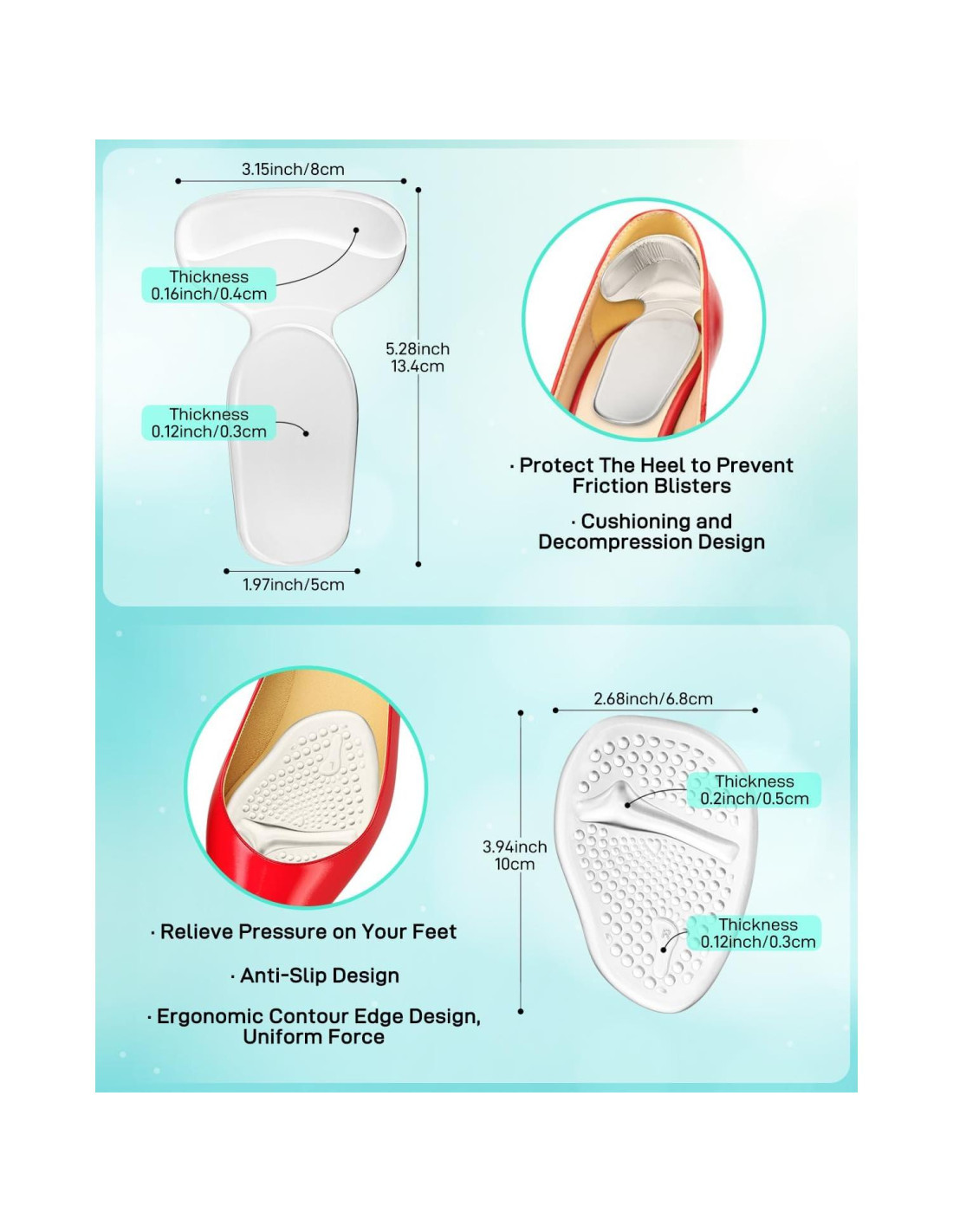 - Esenciales para Usadoras de Tacones Altos: Para aquellas que aman usar tacones altos pero luchan con el malestar, estos cojines para zapatos para mujeres serán un cambio radical en el juego. Con este set de plantillas, puede mantenerse elegante y cómoda mientras usa tacones altos.