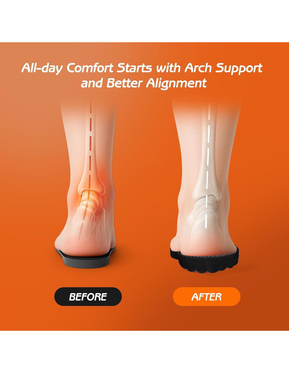 - Soporte Arqueado Mejorado: Con un diseño contorneado que apunta al arco y una copa para el talón en forma de U, estos insertos para zapatos proporcionan el soporte definitivo para la estabilidad y alineación. Son ideales para aliviar el malestar de la fascitis plantar, pies planos y otros problemas comunes de los pies. Al redistribuir la presión de manera uniforme, mejoran la postura, reducen el dolor y te ayudan a moverte con confianza.