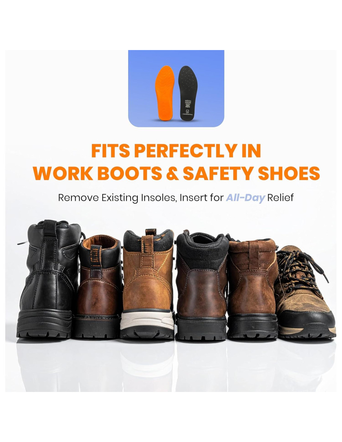 - HECHAS PARA BOTAS DE TRABAJO Y TURNOS LARGOS - Diseño resistente construido para manejar condiciones difíciles. Estas plantillas para botas de trabajo para hombres y mujeres ofrecen alivio del dolor específico, comodidad durante todo el día y reducción de la fatiga incluso durante turnos de 12-14 horas. Plantillas perfectas para caminar todo el día cuando necesitas un soporte confiable en tus botas de trabajo o zapatos de uso diario.