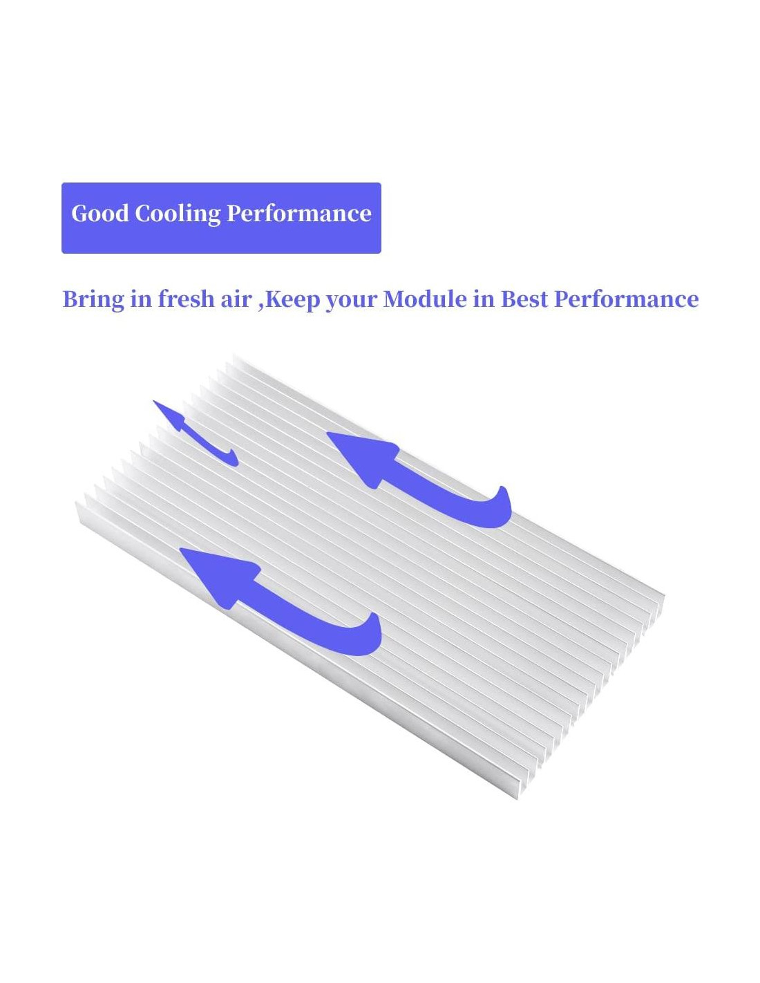 - [Gran Área de Disipación de Calor]: Las aletas aumentan el área de la placa y así proporcionan una mayor transferencia de calor. El disipador de calor de aluminio puede reducir significativamente la falla del hardware debido al sobrecalentamiento y el diseño de la mayor área de superficie puede asegurar el contacto con el aire de enfriamiento.