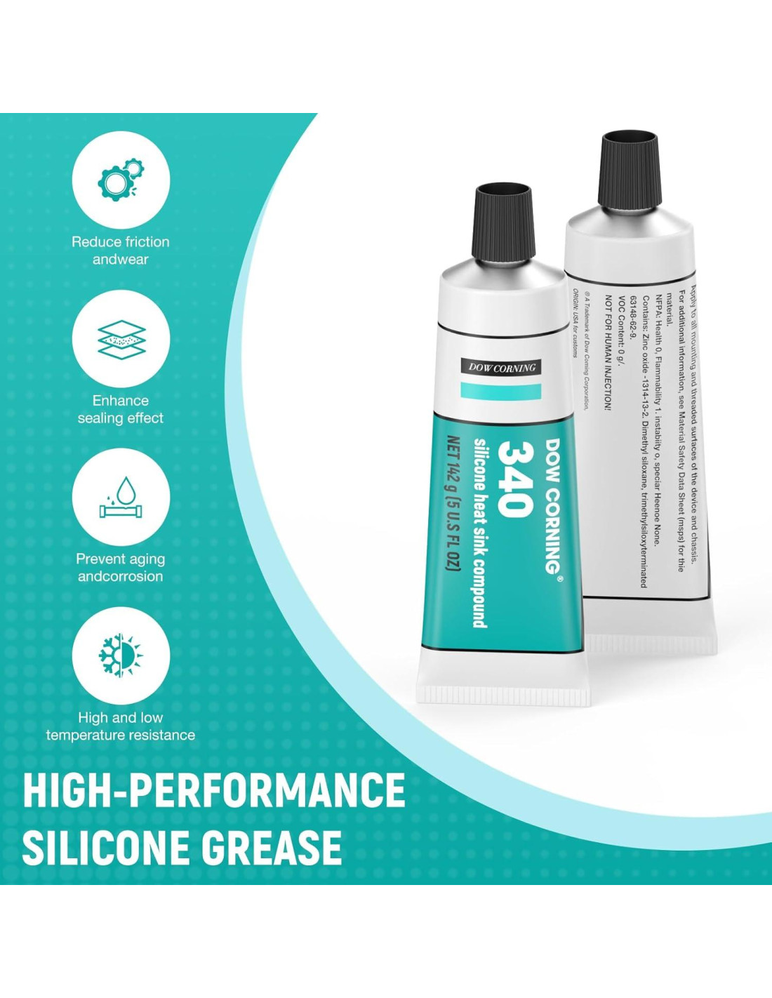 - Compuesto de Disipador de Calor de Silicona 340: Cumple con MIL-DTL-47113, Acoplamiento térmico, Disipador de calor y Conductivo, No fluido, No curable, Bajo sangrado, Conductividad térmica moderada, No necesita hornos ni curado, El flujo de calor lejos de los componentes de circuitos puede aumentar la fiabilidad. fácil de aplicar, puede proteger efectivamente la línea, componentes.