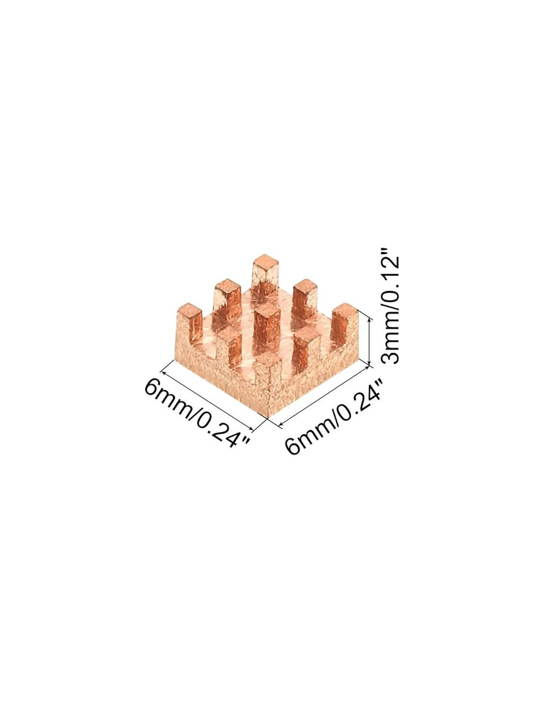 - Material: Cobre; Tamaño del Disipador: 6x6x3mm (0.24x0.24x0.12 pulgadas); con Adhesivo Ordinario.