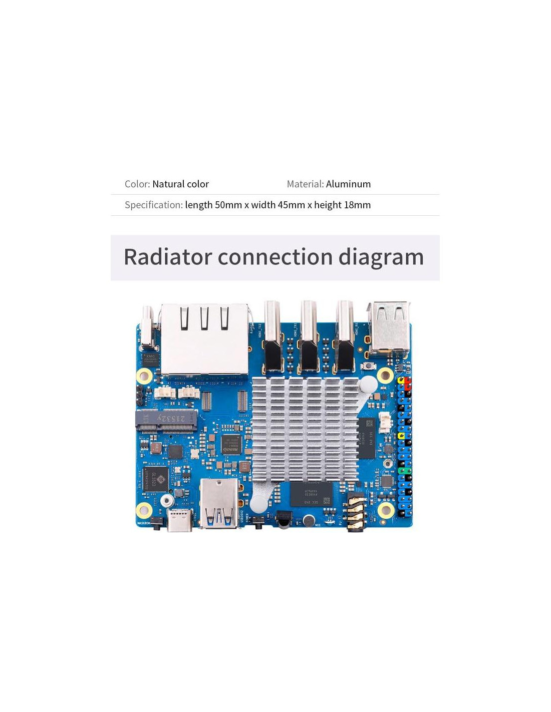 - [Nota Importante]: Después de instalar este disipador, no se puede instalar la caja metálica oficial de Orange Pi. La caja metálica oficial también proporciona una excelente disipación de calor, por lo que puedes elegir entre este disipador y la caja metálica según tus necesidades.