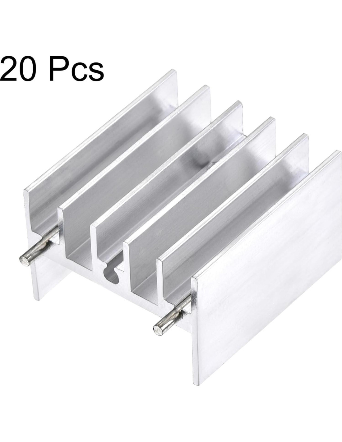 Característica: Este disipador está diseñado para enfriar transistores MOSFET, diodos o reguladores de voltaje (componentes TO-220), como 7805, 7812. El disipador de aluminio se puede aplicar en impresoras 3D, IC, electrónica, disipación de calor de componentes de chips de computadora o en cualquier lugar donde necesite un disipador eficiente. Especificación: Color: Tono Plateado Material: Aleación de Aluminio Tamaño Total: 25 x 23 x 16 mm (L*W*H) / 0.98 x 0.9 x 0.63 pulgadas Contador de Pines de Soporte: 2 Contenido del Paquete: 20 x Disipador