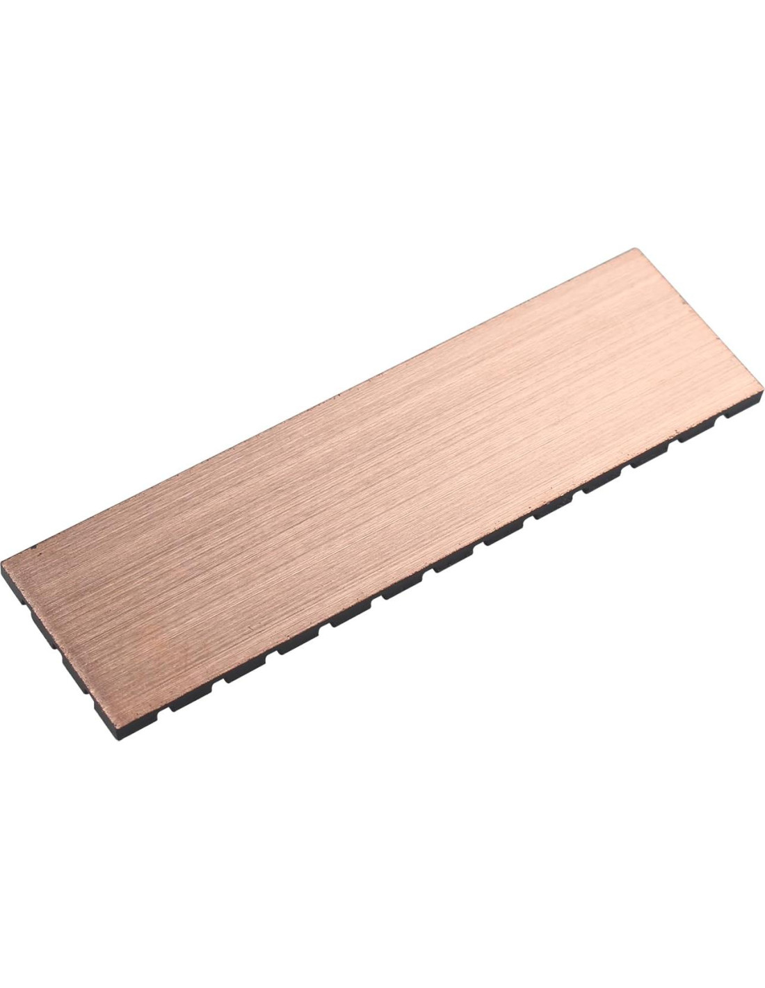 Características: Cubierto de cobre puro por grafito, la conductividad térmica del cobre es mucho más eficiente que la aleación de aluminio. El diseño de ranura aumenta enormemente el área de disipación de calor, el calor acumulado puede liberarse al aire más rápido. Este disipador de SSD M.2 es compatible con NGFF PCIe NVMe M.2 2280 SSD. Además de los SSD M.2, este disipador de cobre puro también se puede usar con otros dispositivos que generan calor, como Nintendo Switch y teléfonos inteligentes. Ampliamente aplicable a PCs portátiles, computadoras de escritorio, y proporciona efectos de disipación de calor para equipos de precisión, placas internas, CPUs, etc. Perfectamente compatible con Samsung 850 EVO, 860 EVO, 960 EVO, 970 EVO, 950 PRO, 960 PRO, 970 PRO, etc. Para maximizar la transferencia de calor en la superficie de contacto, se incluye una almohadilla térmica de baja viscosidad y alta conductividad térmica que se debe instalar entre el SSD M.2 y el disipador M.2, proporcionando flexibilidad en la instalación y mejorando el efecto de enfriamiento. Con un efecto de enfriamiento de 10-30C (dependiendo del entorno), puede enfriar su SSD M.2, mantener una velocidad de transferencia de datos confiable y mejorar el rendimiento de su SSD. Nota: Por favor, retire las películas protectoras en ambos lados de la almohadilla térmica antes de usar. Especificaciones: Material: Cobre puro cubierto por grafito, Silicona Tamaño del disipador: 70x20x2mm Peso: 20.8g Lista de empaque: 1 x Disipador 1 x Almohadilla Térmica 3 x Anillo de Goma
