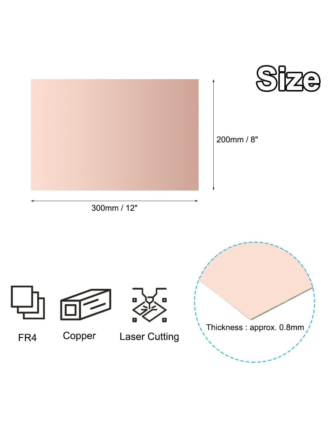 - Especificación: Tamaño: 200x300x0.8mm/8x12x0.032 pulgadas; Color: Cobre; Material: FR4, Cobre; Lista de empaque: 2 piezas de PCB de laminado de cobre de doble cara