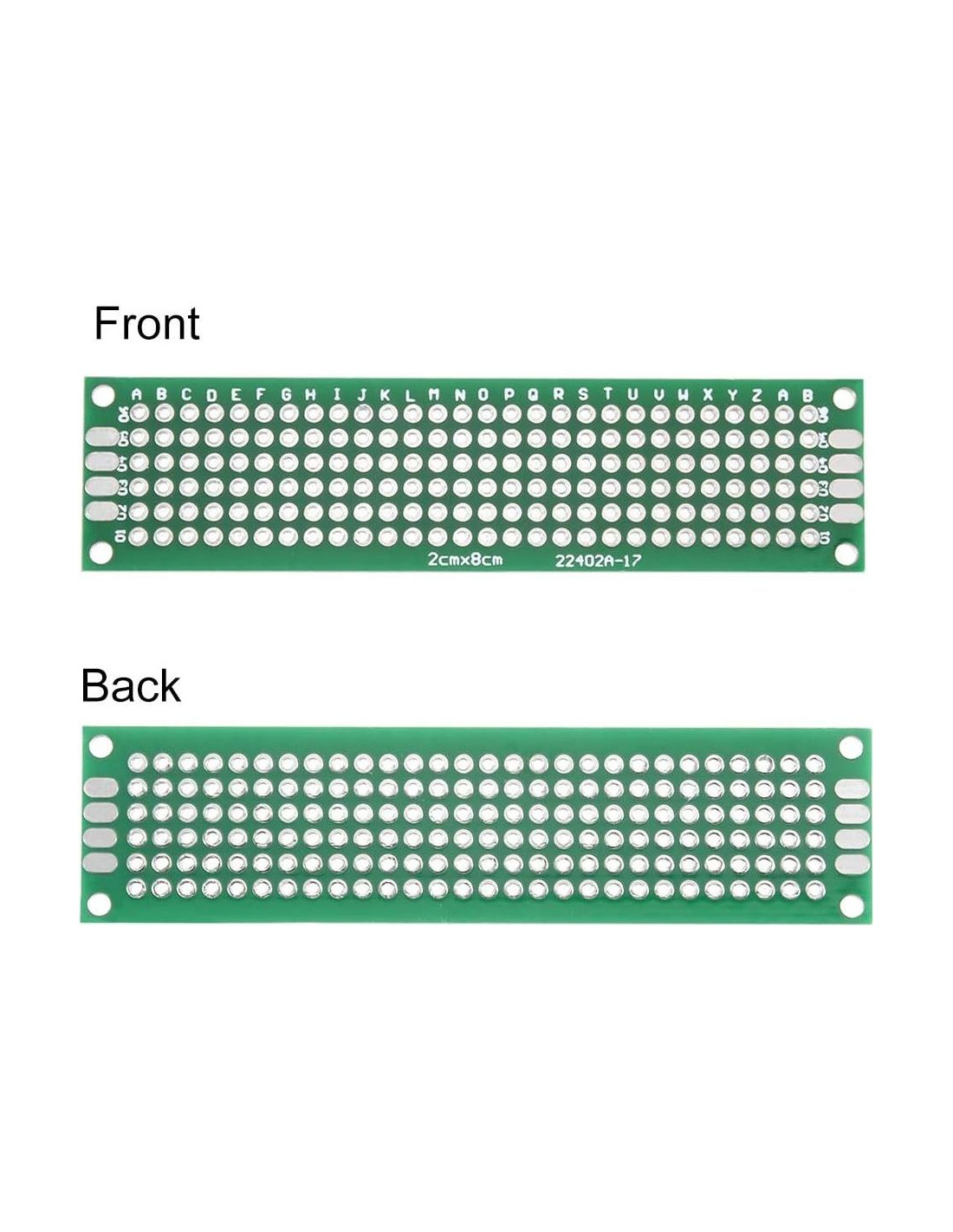 - [Aplicaciones] La PCB soldable le permite transferir su circuito y cables de una placa de pruebas sin recortar cables ni cambiar su diseño. Adecuado para soldadura DIY punto a punto, Proyectos Electrónicos, Práctica de Soldadura, Diseño y Prueba de Circuito, Placa de Computadora, Fabricación de Placa de Prototipo, Enseñanza o Aprendizaje de Circuito.