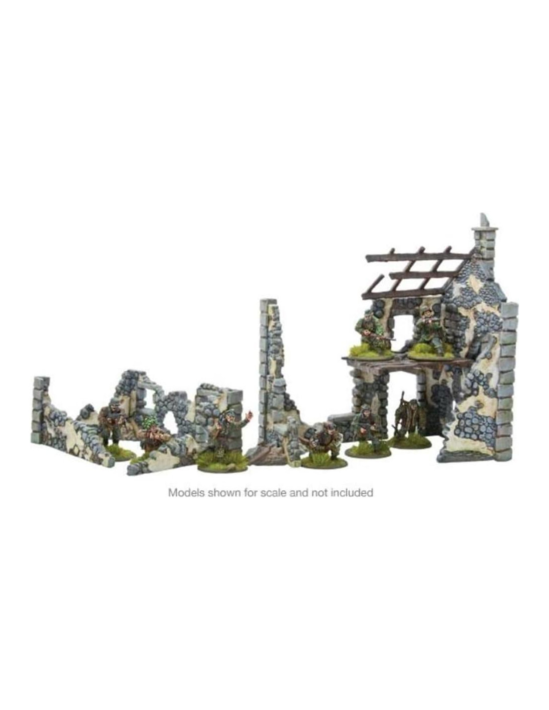 Nada mejora una batalla en la mesa más que un terreno atractivo y evocador. Ya sea que tus juegos se desarrollen en el Renacimiento, período de caballos y mosquetes (1700 - 1900) o en las Guerras Mundiales, esta gran granja en ruinas de plástico te proporcionará un objetivo para tomar y mantener o proporcionar cobertura vital del fuego enemigo para tus valientes tropas. Replicando una de las muchas granjas de piedra que se encuentran en Francia y el noroeste de Europa, este edificio en ruinas proporcionará un nivel adicional de atmósfera a tus batallas. Este kit de plástico contiene tres granjas en ruinas modulares, lo que te permite construir el edificio de diversas maneras directamente de la caja.