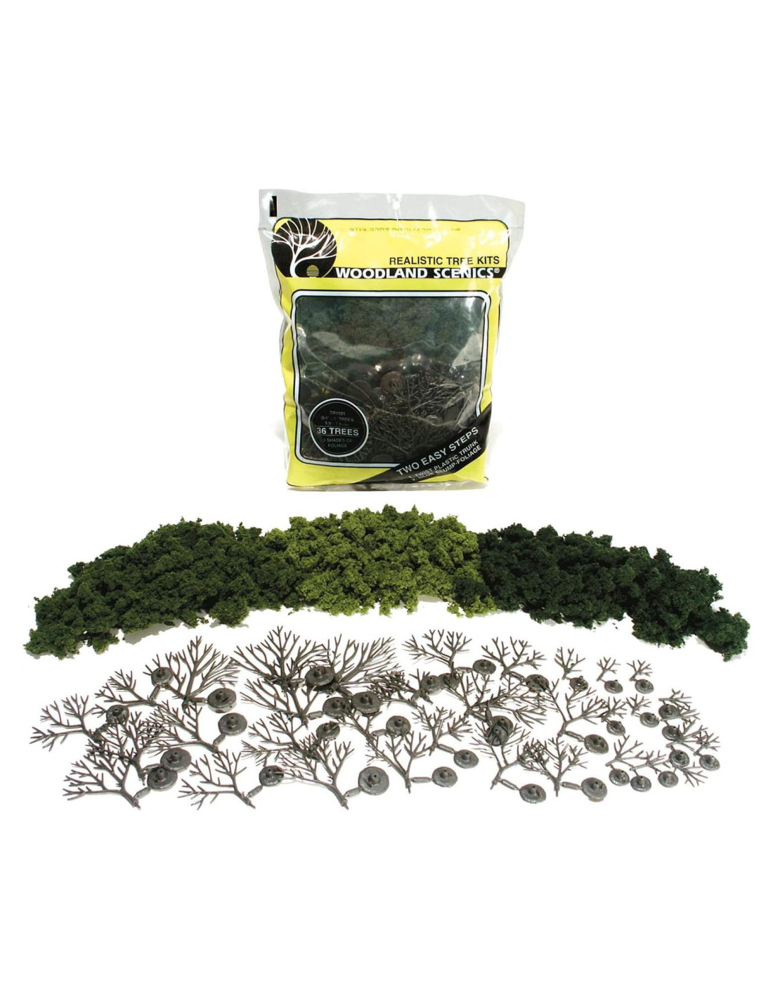 Construye tus propios árboles en dos pasos sencillos. Simplemente dobla las armaduras en forma y aplica el follaje en grumos (incluido). Los árboles se pueden pintar si se desea, y puedes agregar material de follaje adicional para variedad.