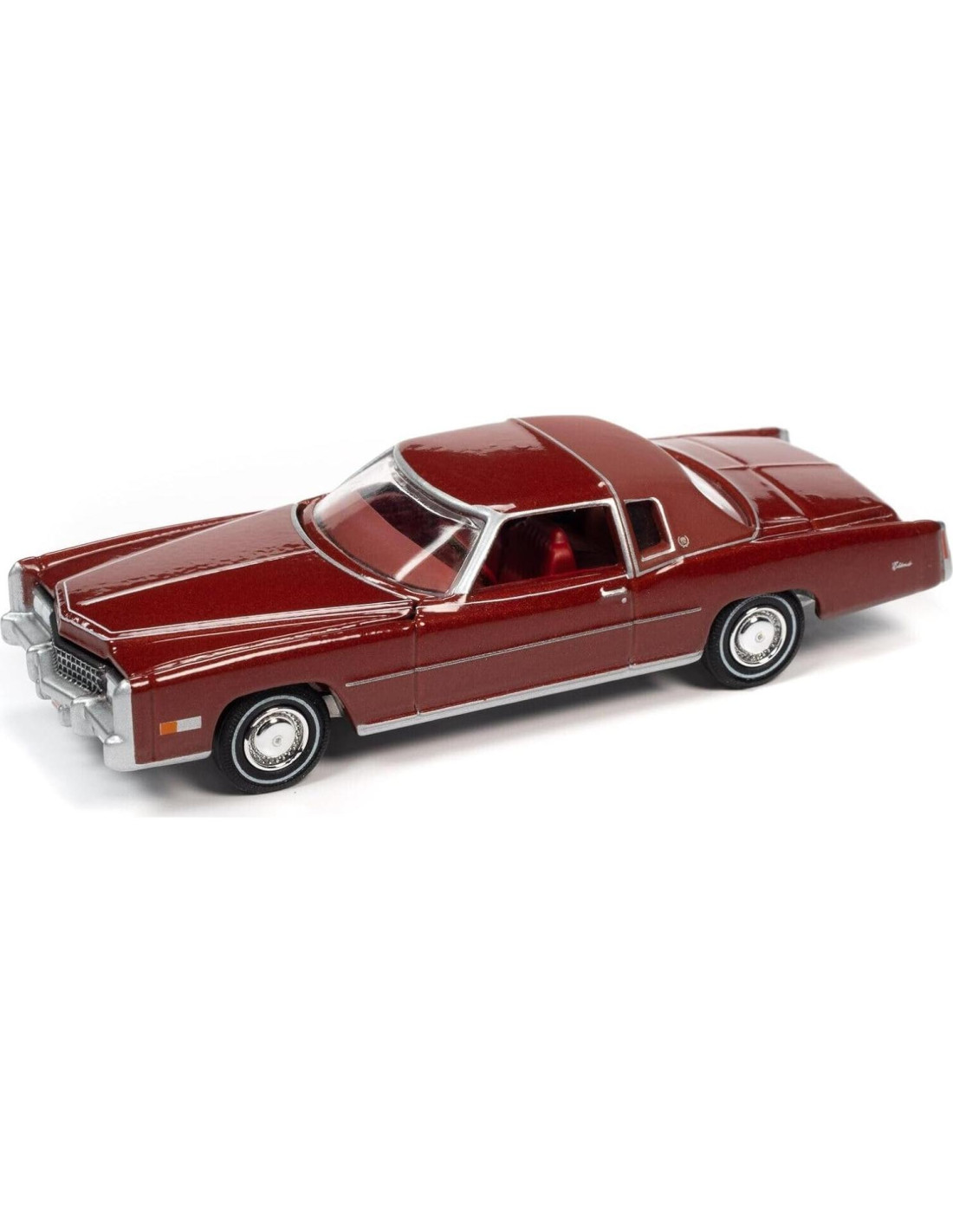 Modelo de coche de diecast a escala 1/64 completamente nuevo del 1975 Eldorado Rojo Firethorn Metálico con Sección Trasera del Techo Rojo Oscuro Mate "Edición de Lujo" Limitada a 14910 piezas en Todo el Mundo modelo de coche de diecast por Auto World 64352-AWSP098B