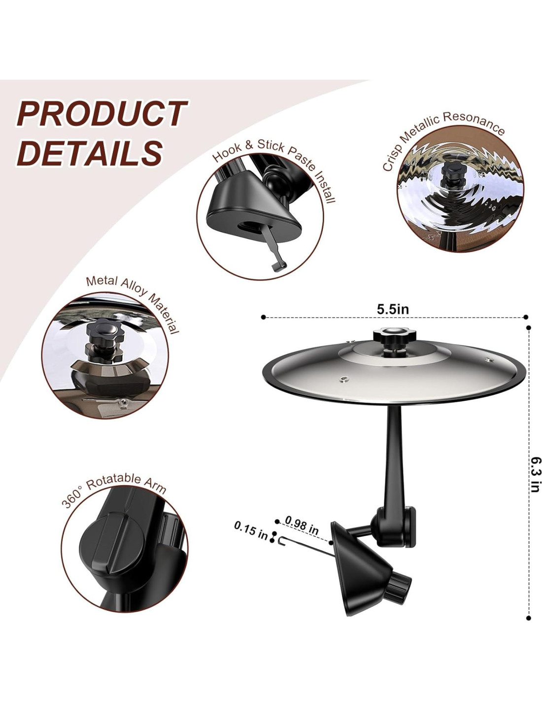 - Sonido Nítido y Fuerte -- ¡Diviértete! Este mini platillo de coche ofrece un tono metálico brillante con un volumen sorprendente. Sincronízalo con tus canciones favoritas y convierte los atascos en sesiones de improvisación. ¡Perfecto para bateristas y amantes de la música que anhelan diversión rítmica al volante!