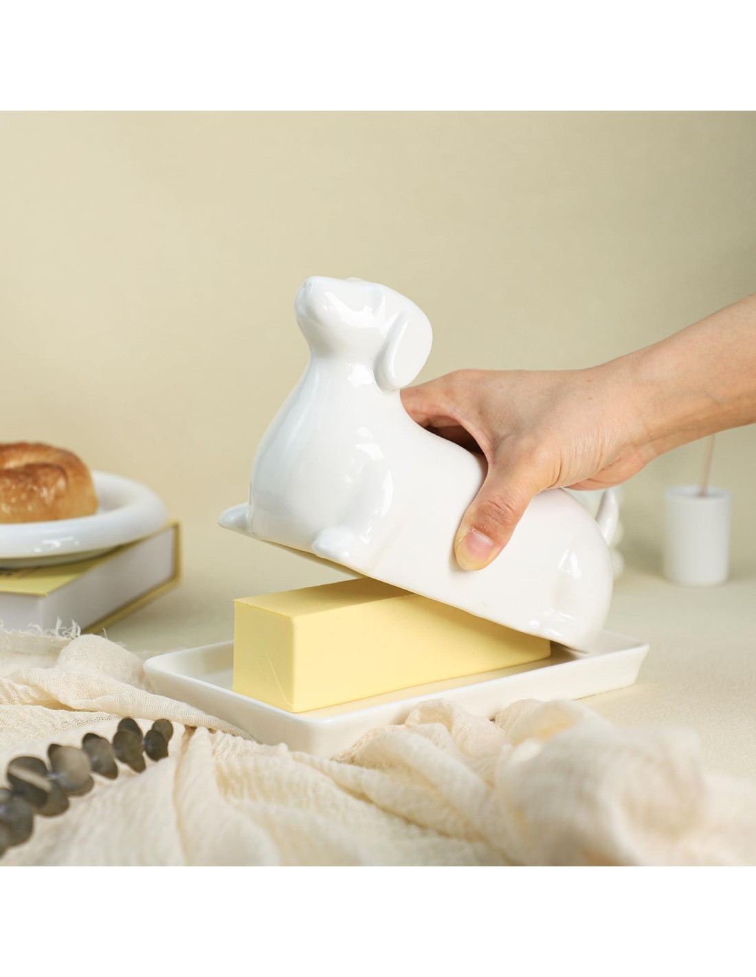 Colias Wing 3D Perro Salchicha Cerámico Plato de Mantequilla con Tapa Conservador de Mantequilla Bandeja para Encimera de Cocina Patrón de Perro Salchicha Conservador de Mantequilla