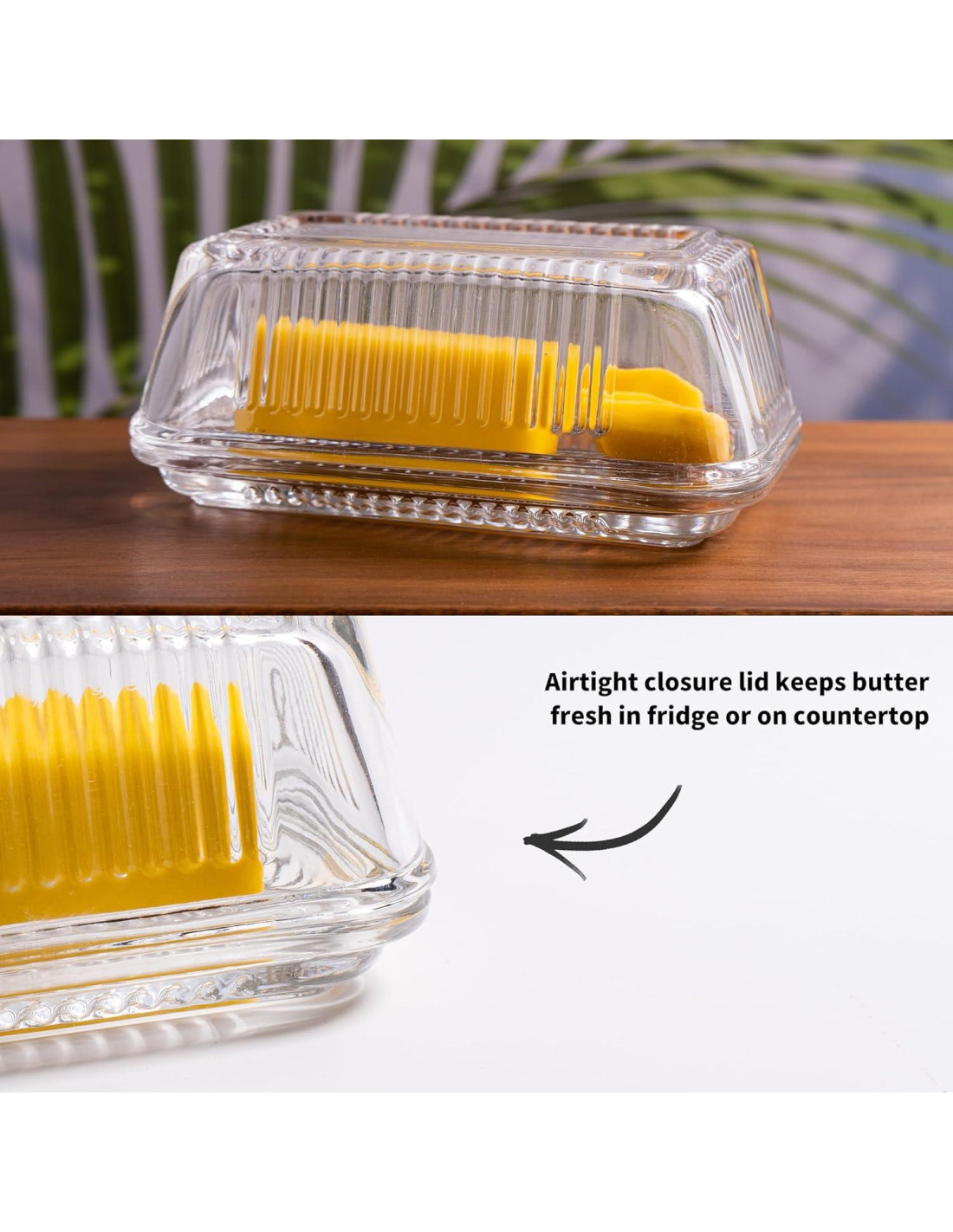 - Plato de Mantequilla de Vidrio con Tapa para Encimera - Hecho de cristal transparente premium y duradero, muestra tus ingredientes de manera hermosa, asegurando que la mantequilla se mantenga fresca y lista para untar