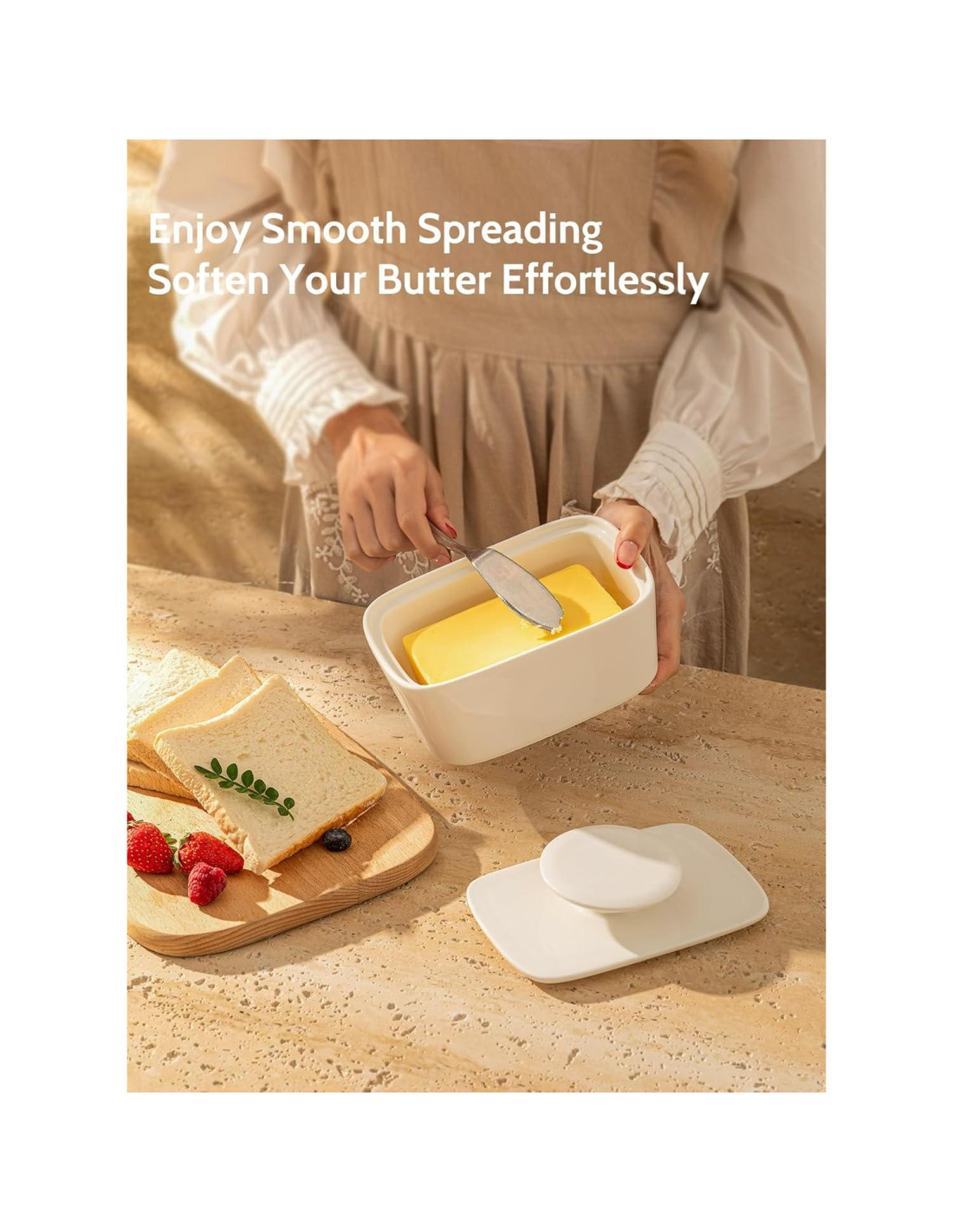- CONTENEDOR DE MANTEQUILLA DE PORCELANA - Es más hermoso y seguro que el feo tipo de plato de mantequilla de plástico. El contenedor está hecho de porcelana resistente, a prueba de astillas y más robusto que la loza.