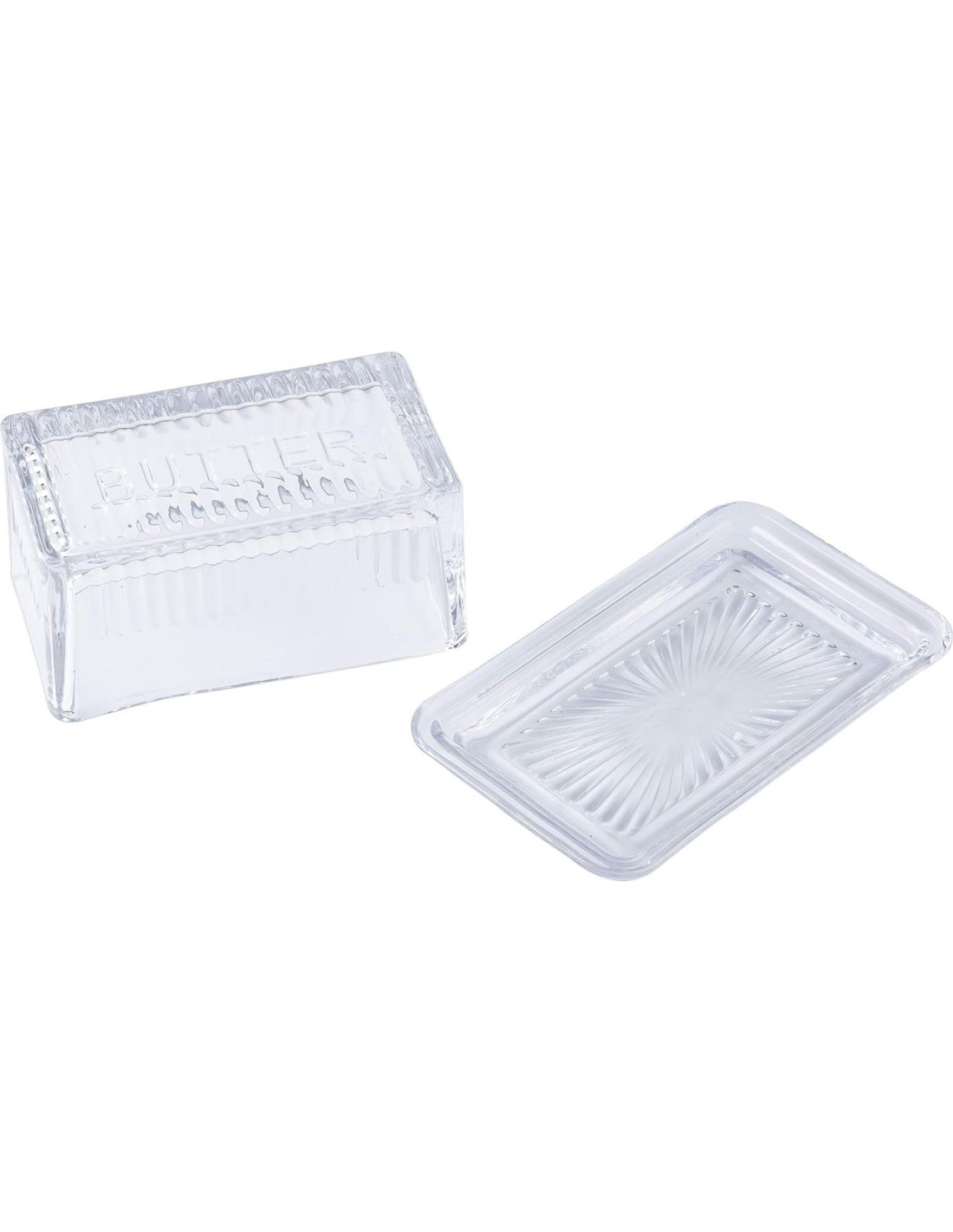 - Plato Doble de Mantequilla, Vidrio Claro, Grabado "MANTEQUILLA", 16.5 x 10.2 x 8.9