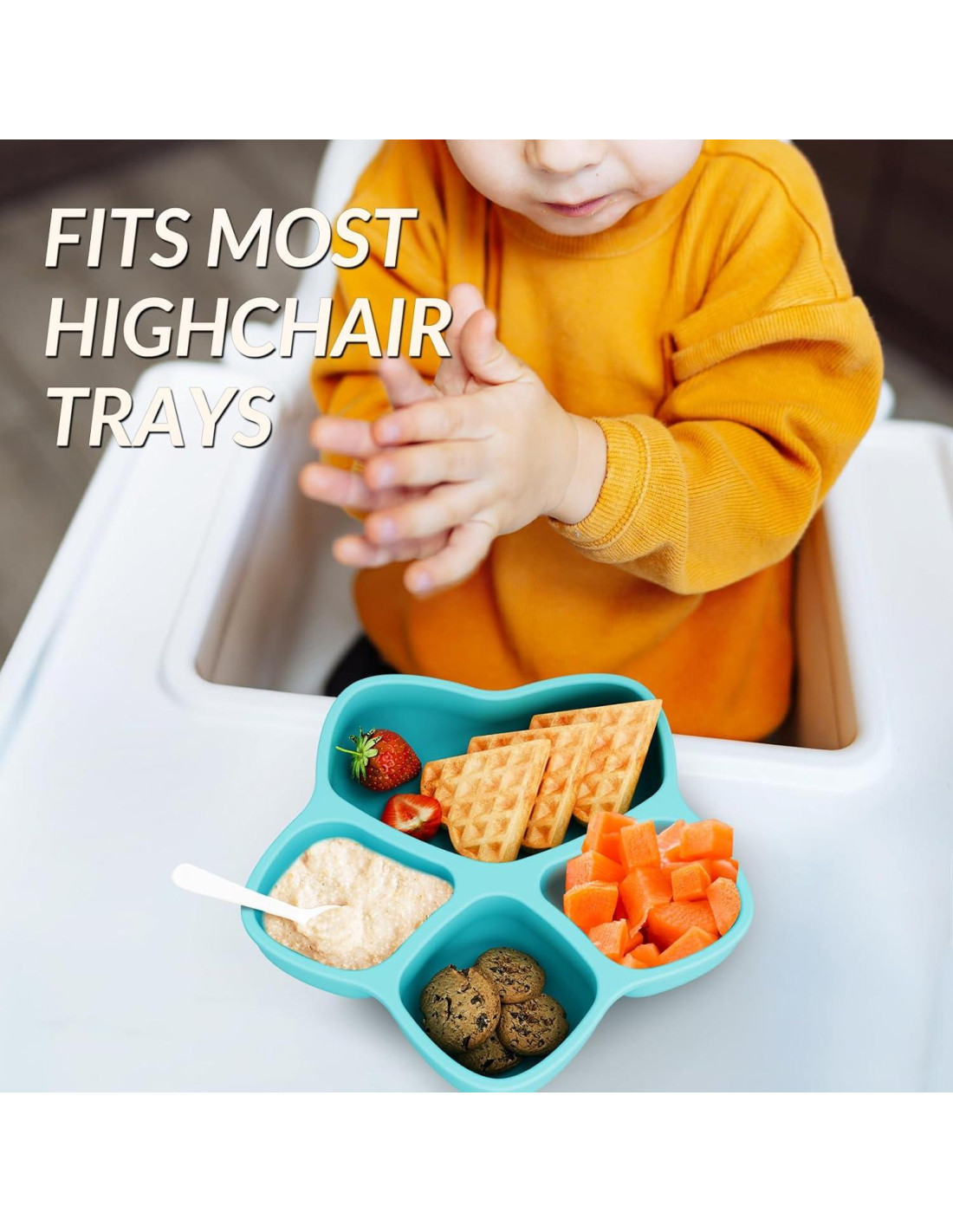 - Platos para Niños Pequeños Sin Desorden El producto incluye 4 platos en 4 colores encantadores, para que tu niño pequeño pueda divertirse eligiendo su color favorito y disfrutar de una agradable hora de comida. Nuestros platos divisores de silicona 100% de grado alimenticio proporcionan a bebés, niños pequeños y niños una forma segura de comer y mantener las comidas ordenadas y sin estrés sin hacer un desastre en la mesa, sillas altas o el suelo.
