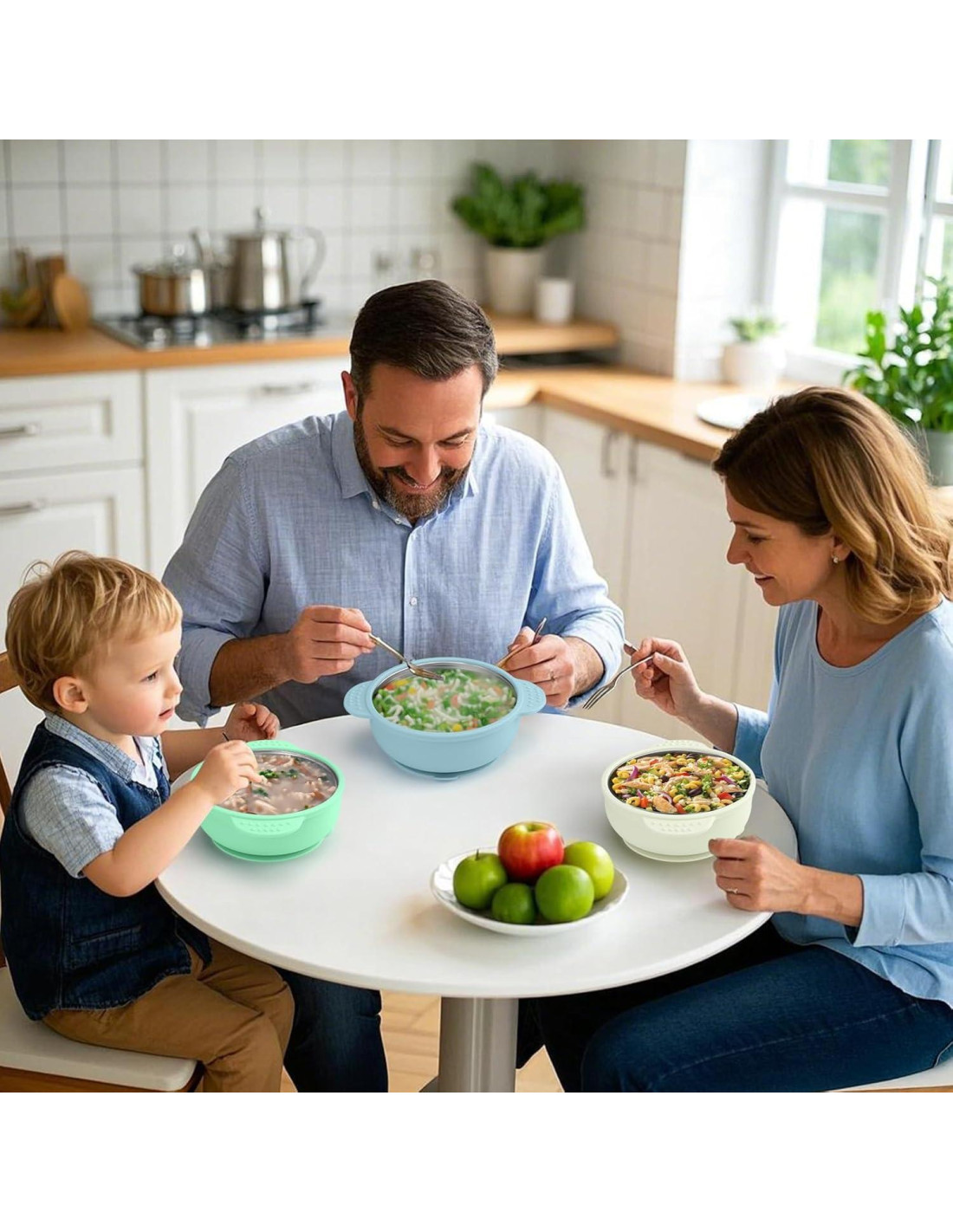 - Comidas Sin Desorden - Imagina a tu bebé aprendiendo a comer sin que el cuenco se deslice por todas partes. Los cuencos de acero inoxidable con base de succión se adhieren firmemente a las tronas y mesas, manteniendo la comida justo donde pertenece y facilitando la limpieza para ti.