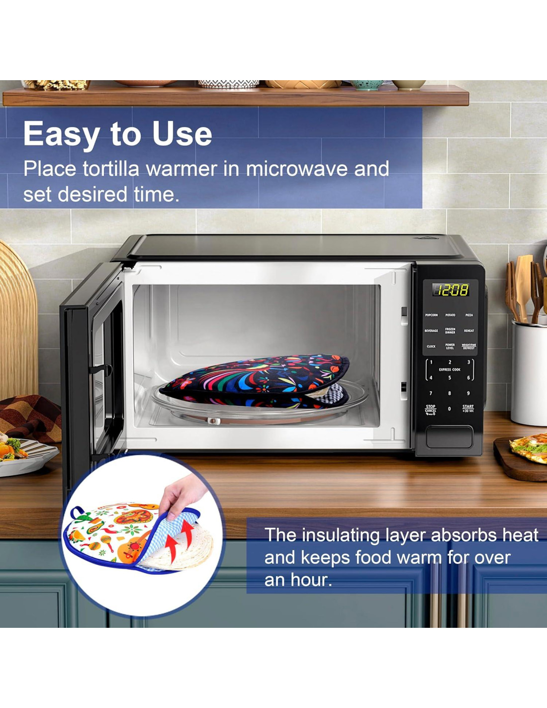 - Fácil de Usar y Limpiar Con un diseño enfocado en la practicidad, este calentador de tortillas es fácil de usar, con una construcción apta para microondas. Limpiar es muy sencillo con material de poliéster lavable a mano y que se seca al aire, ofreciendo conveniencia y mantenimiento sin complicaciones.