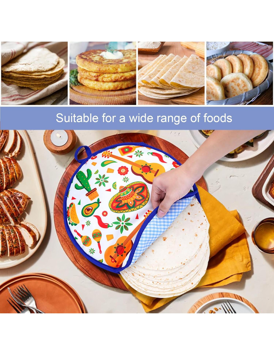 - Tamaño Óptimo para Versatilidad 2pcs calentadores de tortillas generosamente dimensionados, midiendo 30x30 cm, acomodan hasta 12 o 15 tortillas. Esto asegura que puedas servir varios panes planos a la vez, haciéndolo ideal para cenas familiares o reuniones.