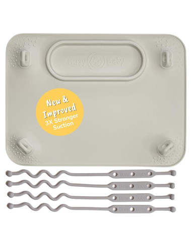 ¡Un tapete de silicona inventado por una mamá diseñado para mantener los juguetes, mordedores y utensilios favoritos de tu bebé al alcance y fuera del suelo! ¡Ahora con VENTOSAS NUEVAS Y MEJORADAS 3 veces más fuertes! Desde el tiempo de juego hasta la hora de comer, la Mata Busy Baby apoya el desarrollo sensorial, habilidades motoras finas y de resolución de problemas. ¡El ingenioso sistema de sujeción mantiene los juguetes y utensilios al alcance, facilitando que el bebé juegue o se alimente solo! Hecho con silicona 100% de grado alimenticio, apto para lavavajillas, libre de toxinas - Plomo, BPA, BPS, Ftalatos, PVC. Mide 21.6 cm x 29.2 cm con cuatro ventosas en cada esquina, manteniendo la mata en su lugar sobre superficies limpias y lisas. *No funcionará con bandejas Stokke o Lalo. Envuelve la Mata alrededor del mango del carrito de compras para duplicar la función: ¡Sin gérmenes y mantén los juguetes fuera del suelo! Silicona 100% de grado alimenticio, segura y duradera para el bebé. 21.6 cm x 29.2 cm. VENTOSAS NUEVAS Y MEJORADAS 3 veces más fuertes más texturas sensoriales. Fomenta la alimentación autónoma y habilidades de desarrollo. Libre de toxinas - Plomo, BPA, BPS, Ftalatos, PVC. Apto para lavavajillas. Versátil e intercambiable con otros productos Busy Baby. Conveniente y práctico. Apoya un desarrollo saludable. ***No funcionará con las bandejas Stokke o Lalo. Asegúrate de que la superficie y la Mata estén limpias antes de usar. Un rápido pase con una toallita para bebés ayuda. Simplemente hierve en una mezcla de 2/3 agua + 1/3 vinagre blanco destilado durante 5 minutos. ¡Elimina la acumulación! Mezcla bicarbonato de sodio con peróxido de hidrógeno, frota sobre la mancha, deja secar y luego lava bien. Mata de Silicona Mini Succión. Bungee para Botellas. Mordedor y Cuchara de Entrenamiento. Bungee para Juguetes. Bungees para Baberos y Utensilios. Utensilios de Silicona para Bebés. Paquete Ultimate para Bebés.