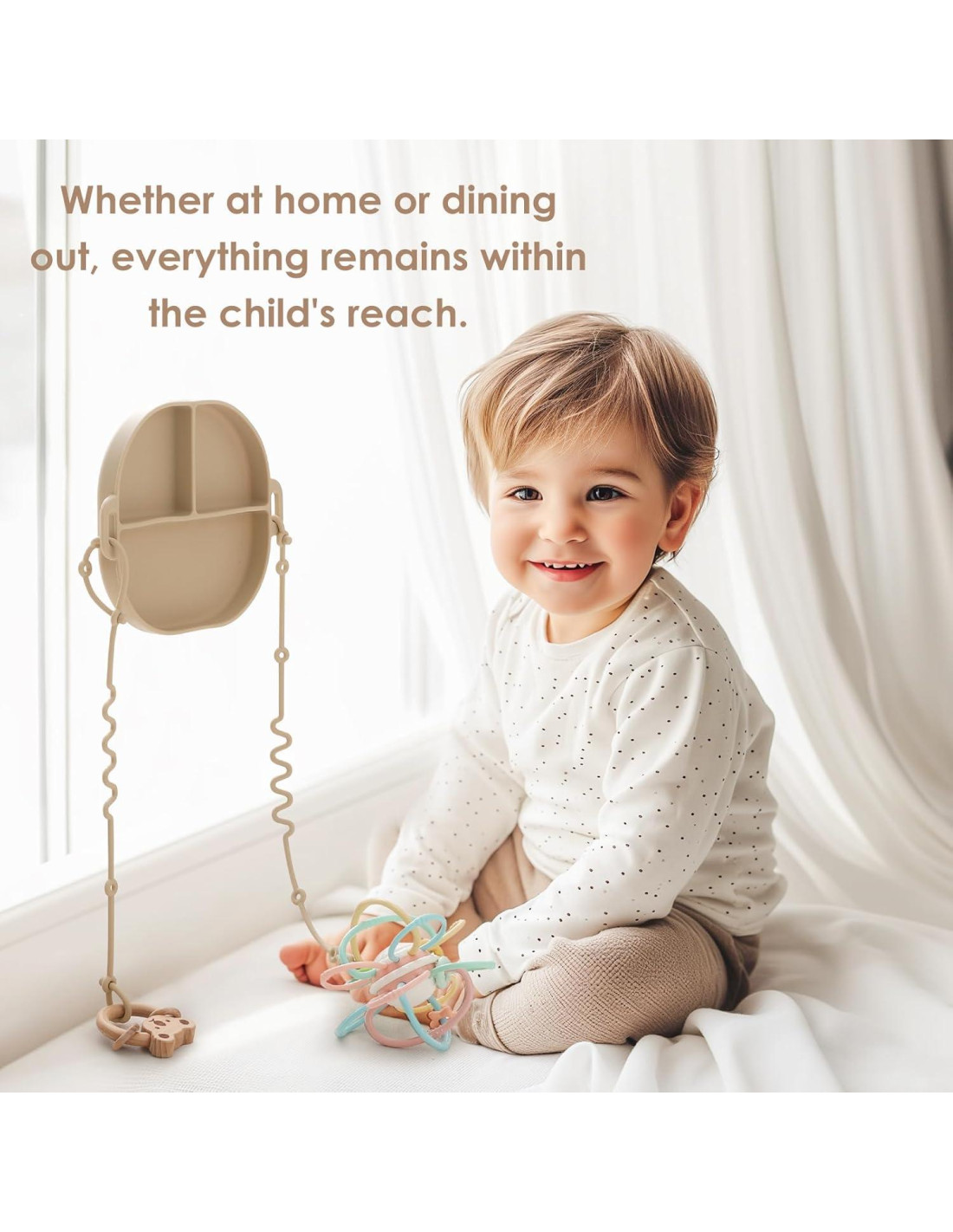 - Fuerte y práctico: El plato mide 21.0 cm x 18.0 cm y está hecho de silicona muy duradera y flexible, las cucharas de silicona ofrecen una textura suave para masticar y practicidad durante las comidas, las correas son resistentes, soportando el uso diario y tirones, permitiéndote adjuntar varios utensilios, tazas, juguetes o botellas a los platos. Esto proporciona tranquilidad tanto durante la hora de la comida como en el tiempo de juego.