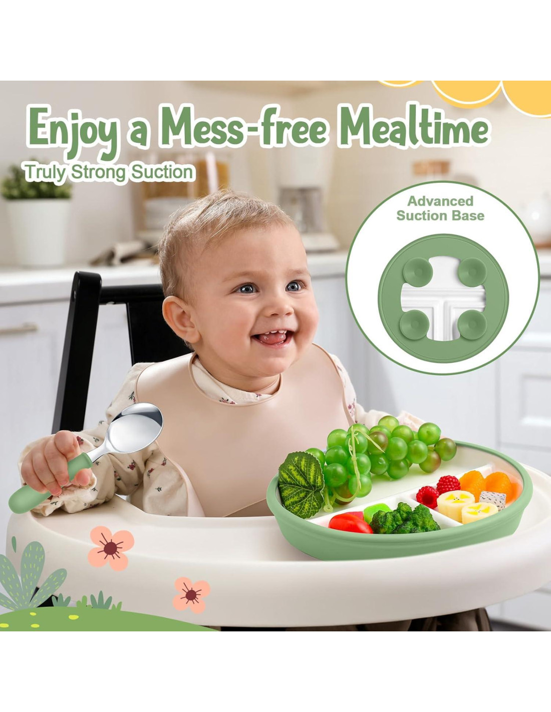 - Diseño Antideslizante Todo en Uno: la cubierta protectora de silicona de nuestros platos para niños tiene succión y puede adherirse firmemente a cualquier superficie plana en la silla alta o mesa; Esto evita que los niños derriben o tiren los platos y fomenta una alimentación independiente y ordenada.