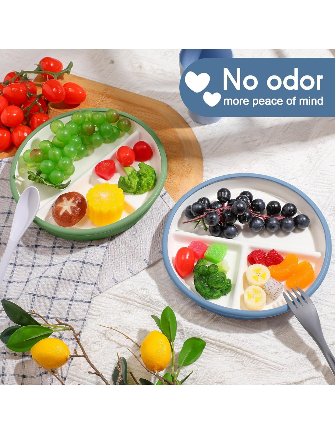 - Fácil de Limpiar: nuestros sets de platos para niños están hechos de material de calidad, lo que los hace fáciles de limpiar; Pueden soportar altas temperaturas, lo que los hace aptos para uso en microondas y se pueden limpiar fácilmente en el lavavajillas, sin necesidad de quitar la funda de silicona.