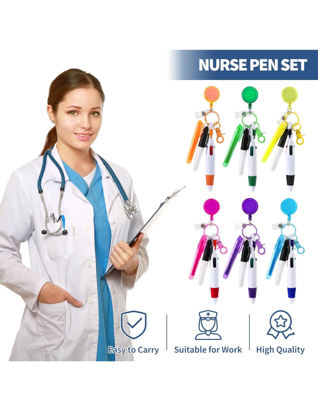 - Paquete Incluye - Se te proporcionan 6 conjuntos de plumas de enfermera en 6 colores, cada conjunto contiene 1 pluma multi-color 4 en 1, resaltador, pluma marcadora, llavero y carrete de insignia retráctil, completo y suficiente para tus necesidades.