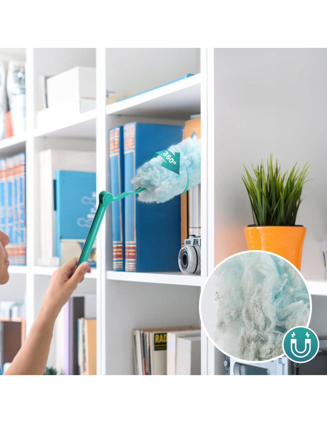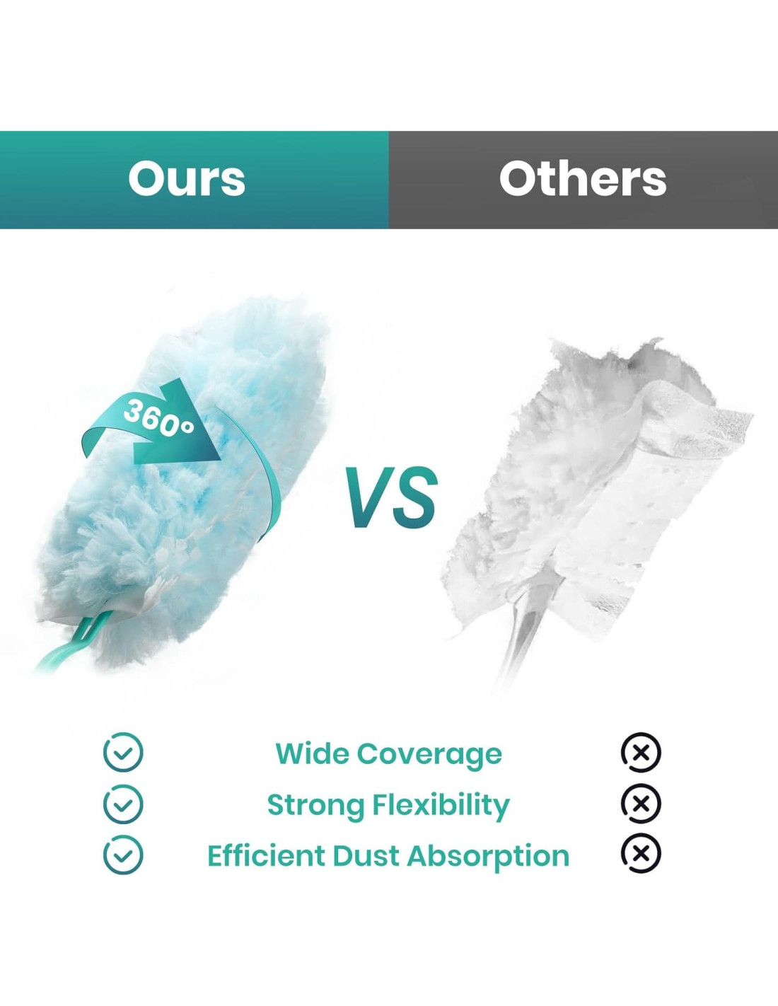 - En comparación con el plumero de 180 grados, el diseño de 360 grados permite una mayor limpieza y eliminación de polvo. Con tecnología estática, este plumero captura eficazmente el polvo y el pelo sin esparcir demasiado en el aire.