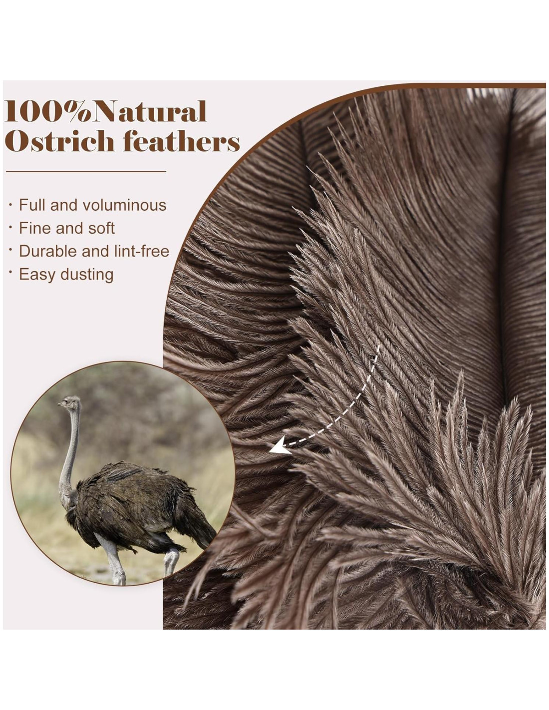 - TAMAÑO: Este plumero de avestruz mide 14.9 pulgadas (37.8 cm) de largo, de los cuales el mango mide aproximadamente 8.2 pulgadas (20.8 cm) y la parte de pluma mide aproximadamente 6.7 pulgadas (17 cm). El diseño ergonómico hace que la tarea de limpieza sea mucho más simple y fácil.