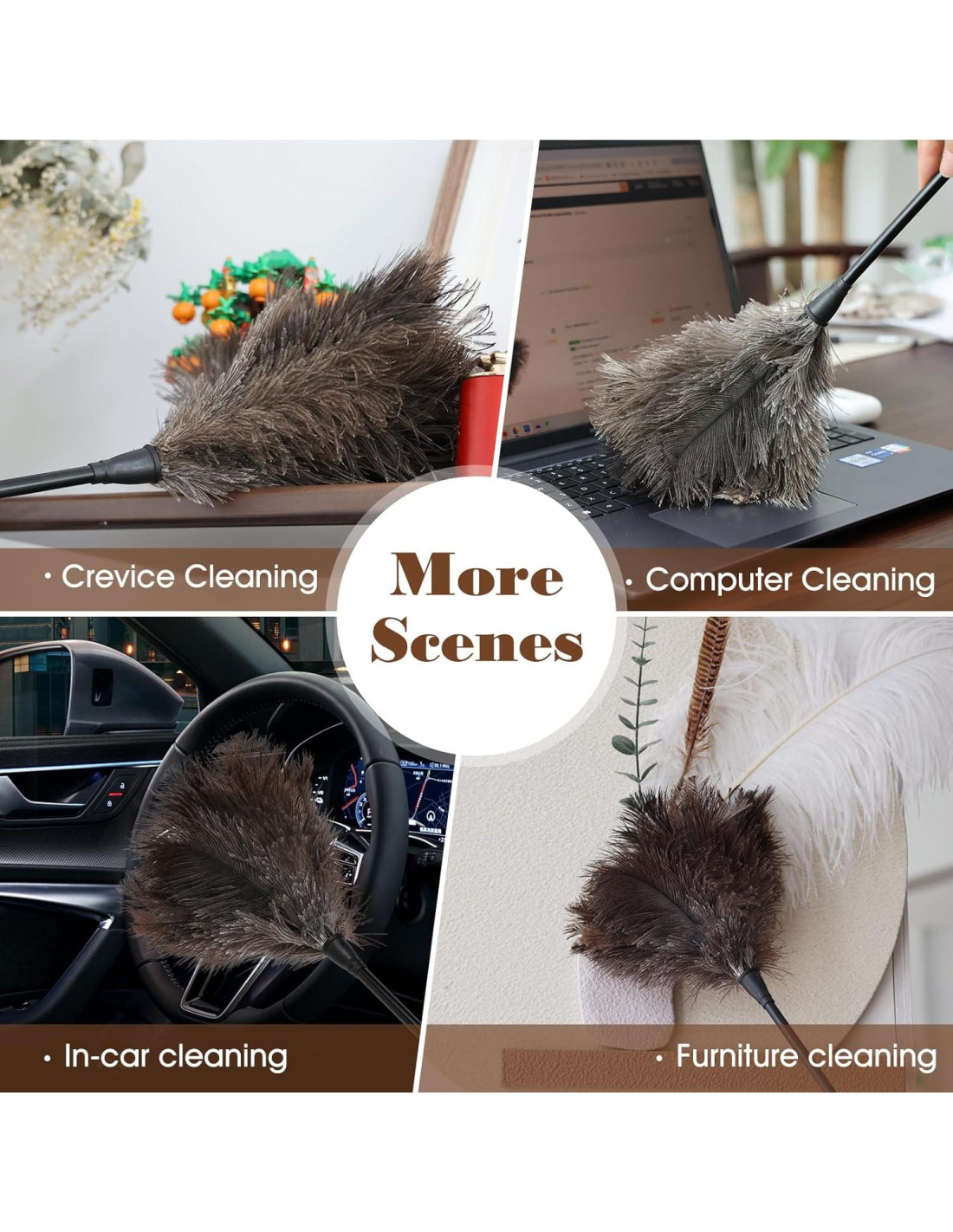 - ESCENARIOS DE USO: El plumero de plumas de avestruz se puede usar para limpiar una habitación rápidamente. En casa, se puede usar para limpiar sofás, persianas, marcos de fotos, estanterías, jarrones, piano, equipos de audio. En la sala de estar, también se puede usar para limpiar camas y lámparas de pie. En la oficina, se puede usar para limpiar escritorios de computadora, adornos de vidrio, etc. Y también se puede usar para limpiar coches.