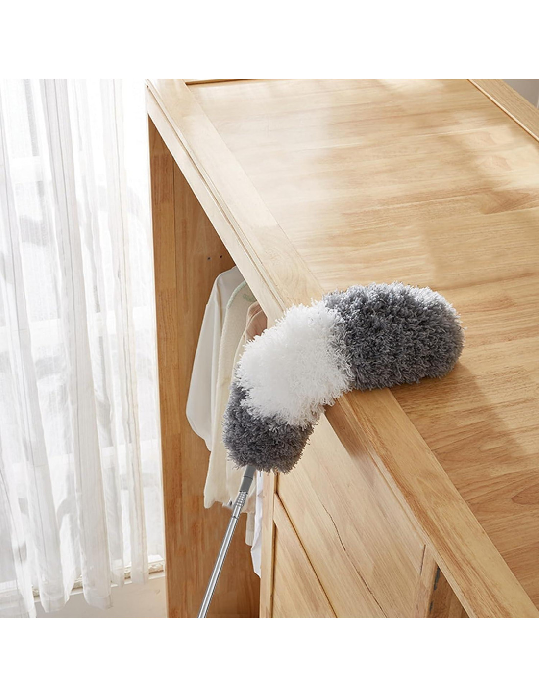 - [Escenarios ampliamente aplicables]: Este limpiador de polvo telescópico funciona muy bien en todo tipo de situaciones de limpieza. Ya sea limpiando el techo o ventiladores de techo, o incluso quitando el polvo entre muebles y electrodomésticos, lo maneja todo con facilidad. Todos en la familia pueden usarlo, haciendo que la limpieza sea más simple y eficiente.