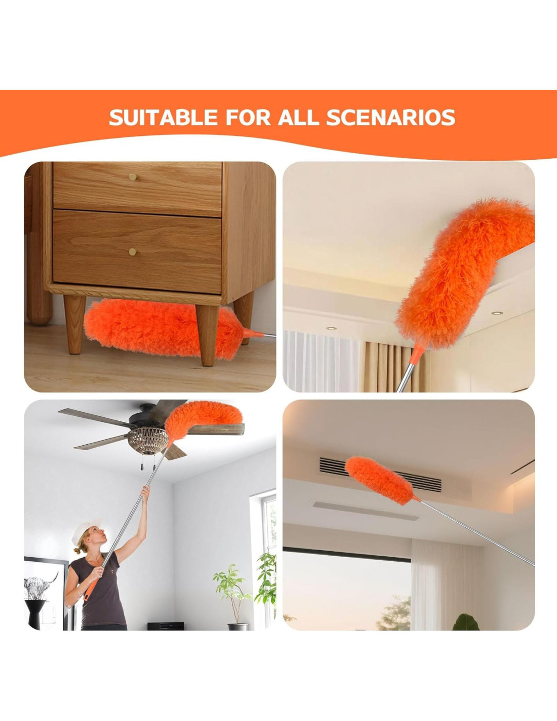 - PLUMERO CON POSTE EXTENSIBLE - Nuestro plumero con mango extensible de 30'' a 100'' (76.2 cm a 254 cm), ya no más equilibrándose peligrosamente en taburetes tratando de alcanzar áreas altas. Este plumero de microfibra es la mejor manera de limpiar persianas, lámparas, ventiladores de techo, cuadros enmarcados
