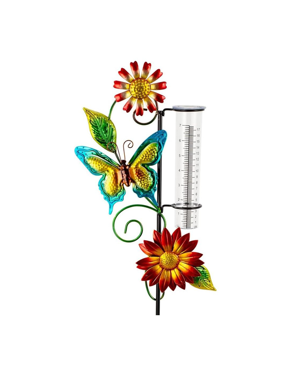 - Decoración de Jardín: Este pluviómetro presenta elementos de mariposa y flores, combinados con colores vibrantes, haciendo que tu jardín esté lleno de vitalidad y felicidad