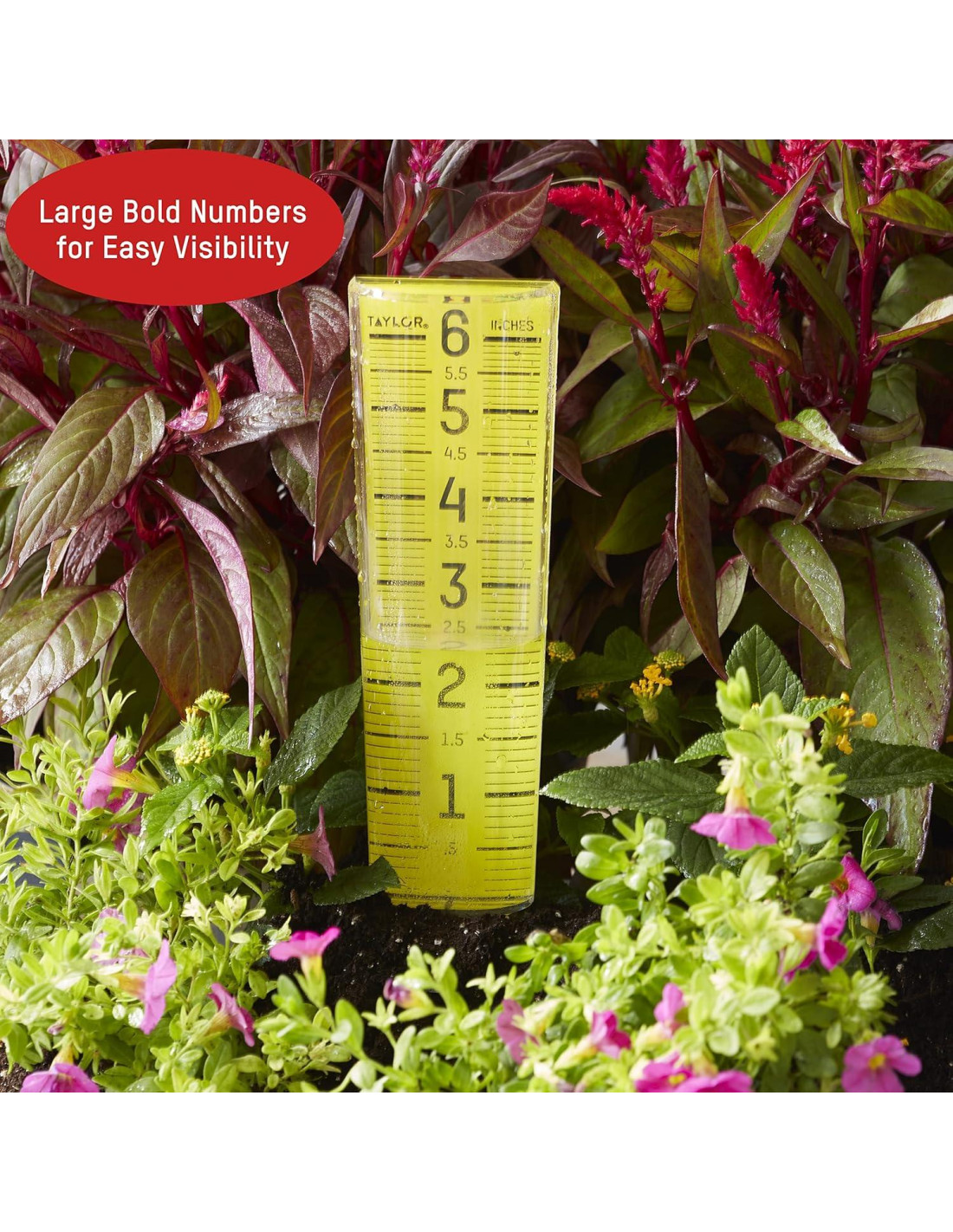 Mantén un césped y jardín saludables al rastrear la lluvia para evitar el riego excesivo o insuficiente con el Medidor de Lluvia ClearVu de Taylor. Este medidor de lluvia duradero puede medir hasta 15.24 cm de lluvia, lo que es ideal para la jardinería en casa y la conservación del agua. Presenta incrementos de medición de 0.25 cm y es fácil de leer. La construcción resistente a la intemperie es duradera y puede soportar elementos exteriores. No permitas que el agua se congele en el medidor de lluvia. Instala en un poste usando dos tornillos y adjunta a los agujeros provistos en el soporte de montaje. Para la instalación en el suelo, inserta el extremo puntiagudo en el suelo hasta el nivel de la base del medidor de lluvia. Para los resultados más precisos, monta lejos de edificios altos y árboles.