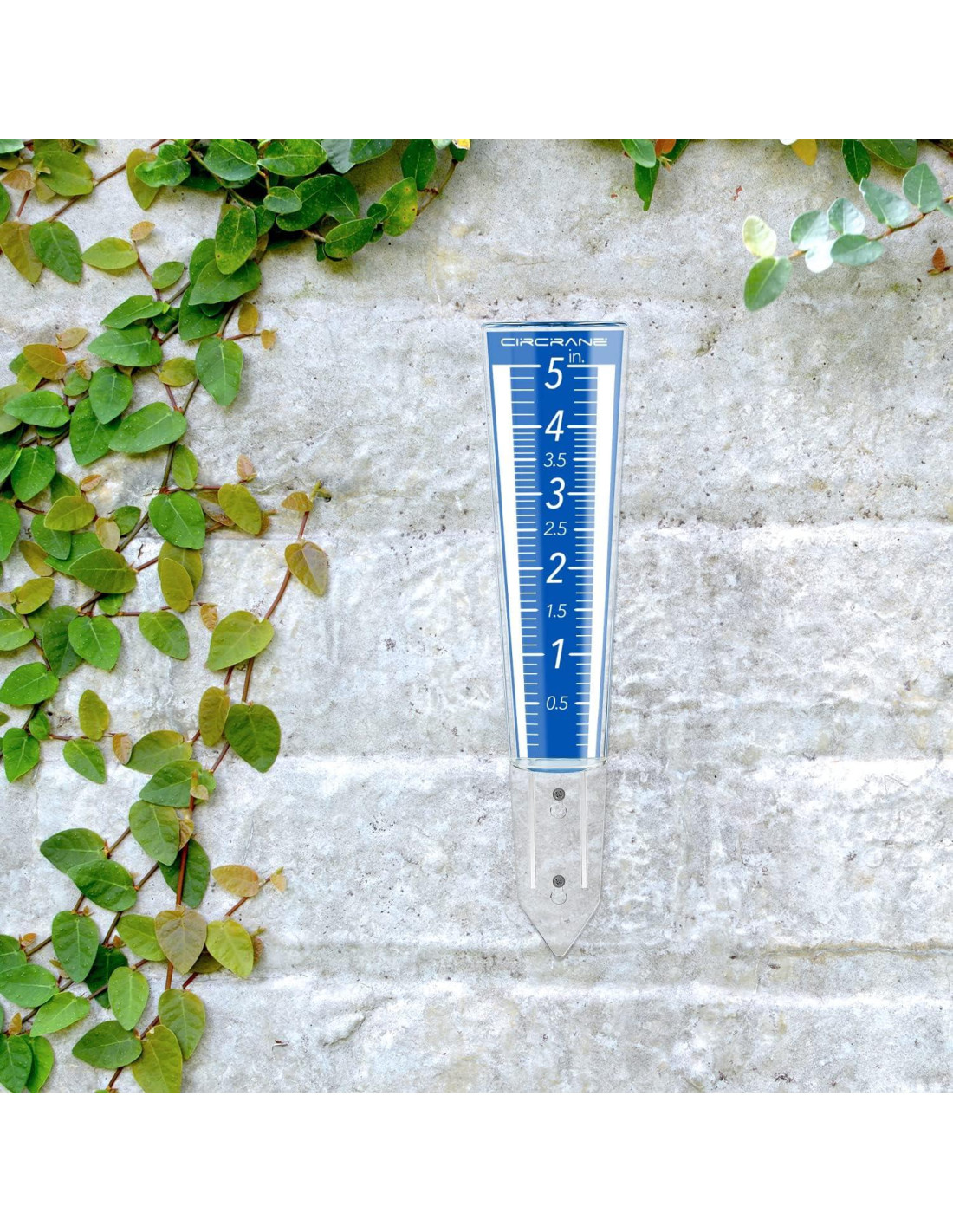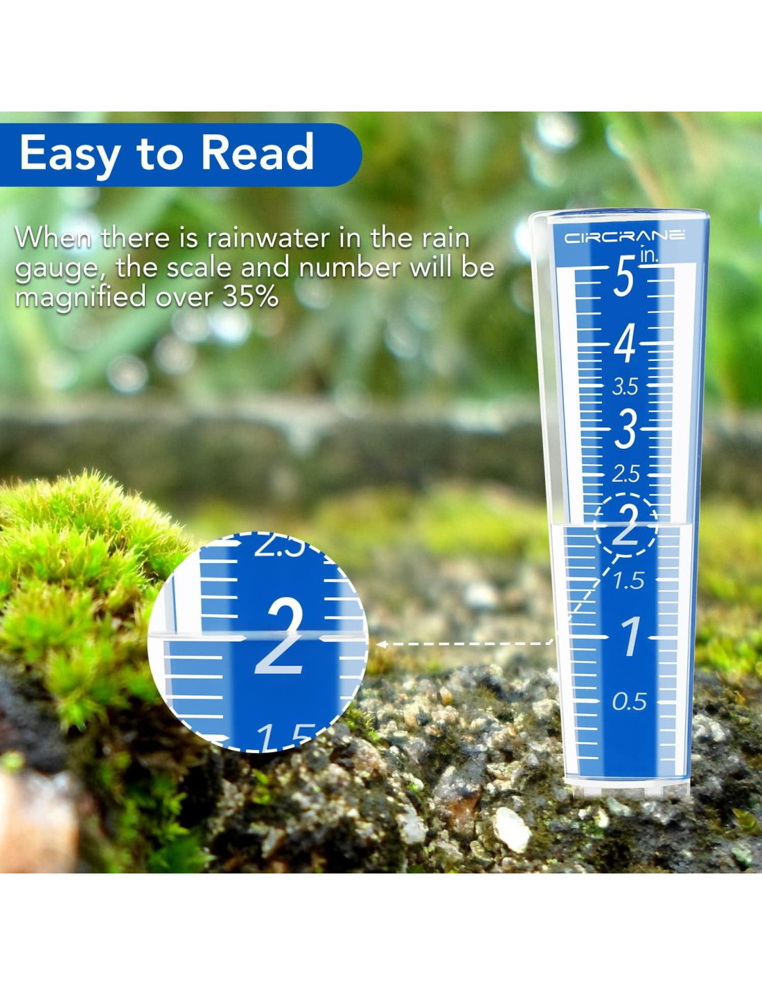 - Duradero, medidor de lluvia de acrílico resistente a la intemperie que puede medir hasta 5 pulgadas (12.7 cm) de agua de lluvia.