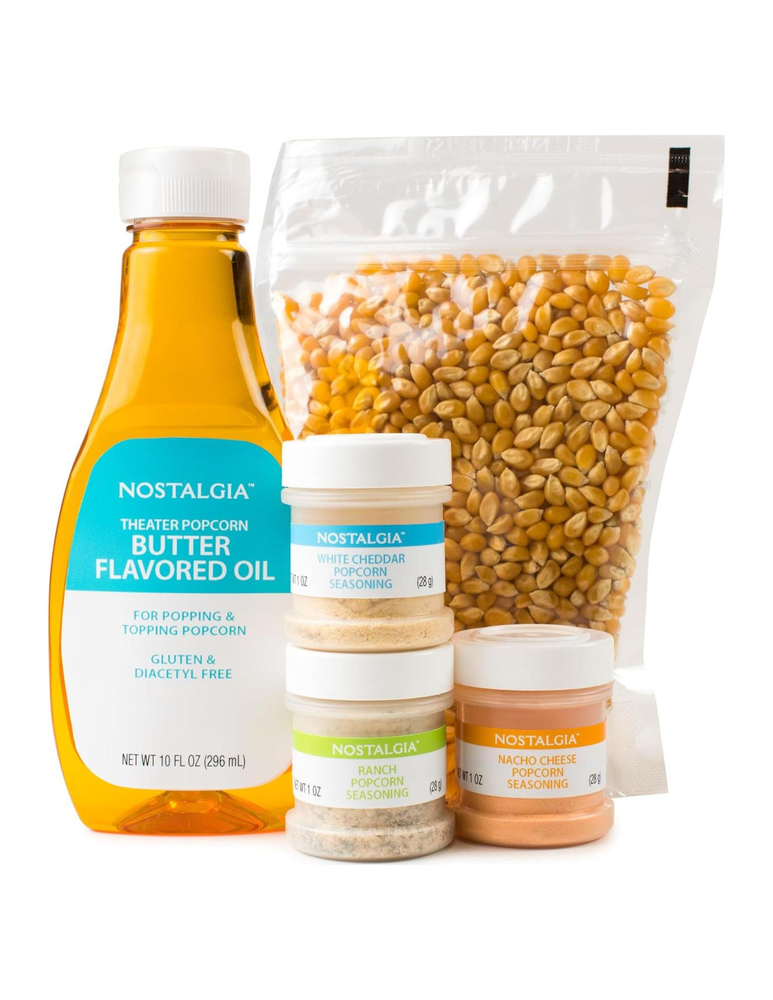 - COMBINAR CON MÁQUINAS DE PALOMITAS NOSTALGIA: Usa este kit todo en uno con cualquier máquina de palomitas Nostalgia para un bocadillo deliciosamente satisfactorio en casa.